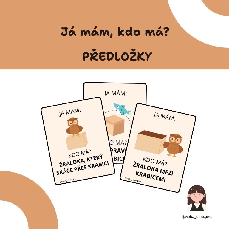 Materiál cíleně rozvíjí porozumění místním a pohybovým předložkám, které jsou pro mnoho dětí náročné. Materiál obsahuje: sadu ilustrovaných karet 36ks „Já mám, kdo má?“ (START → KONEC), návod k použití,