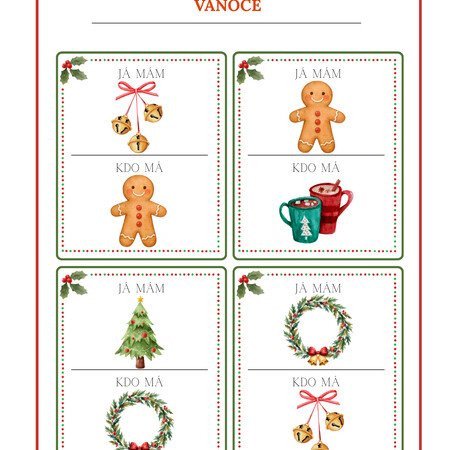 Hra ,,Já mám, kdo má?'' s vánoční tematikou obsahuje 20 kartiček.🎄🎁