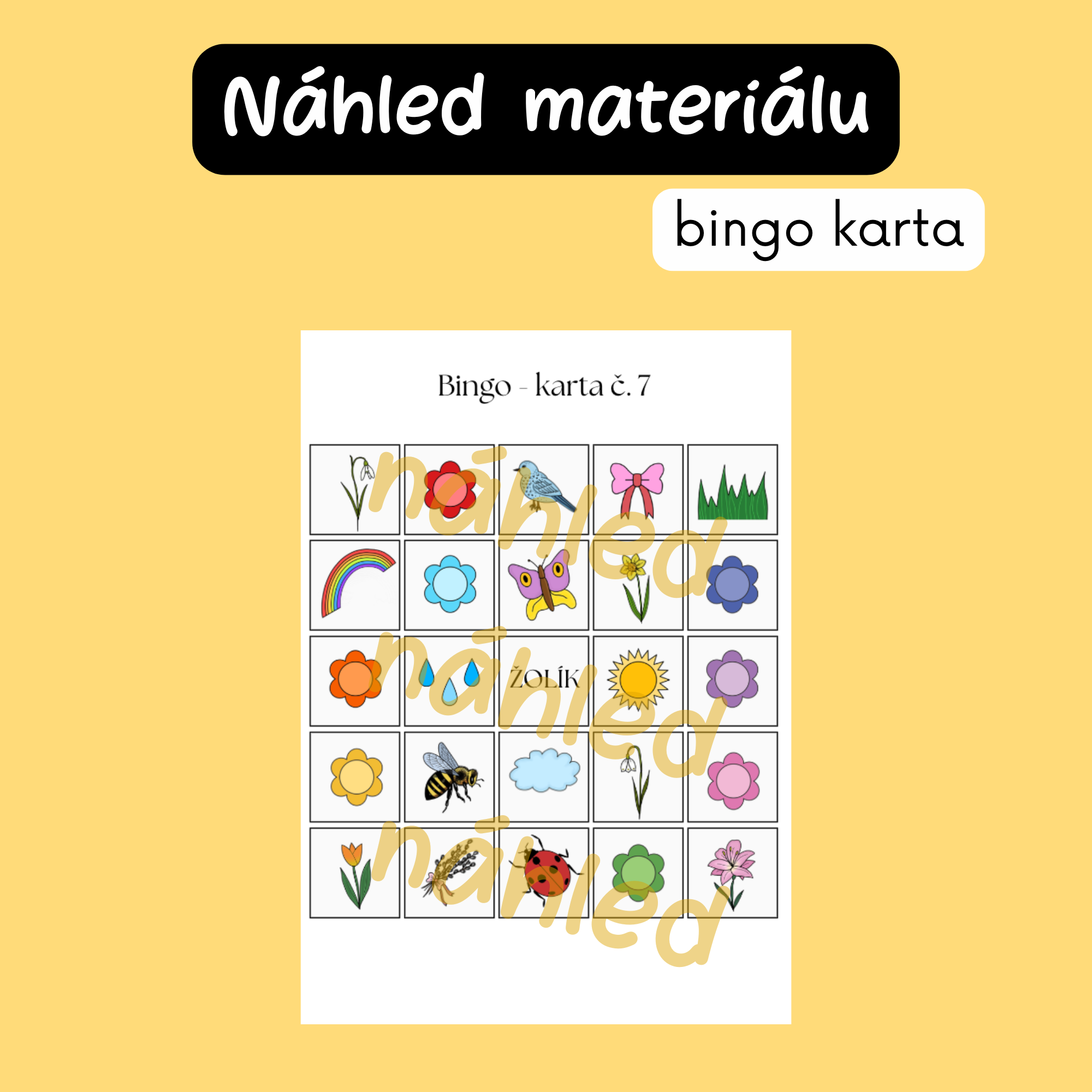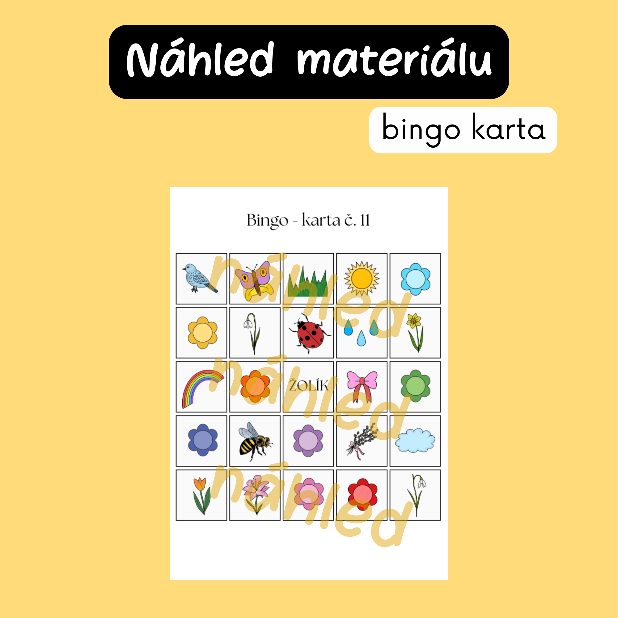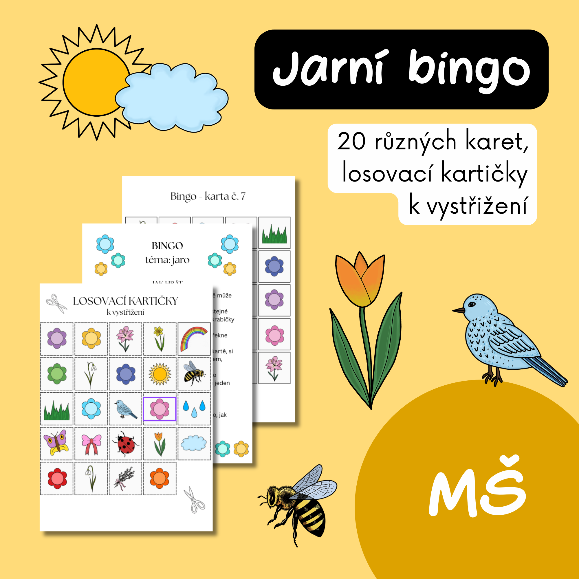 - hrací karty 5×5 s jarními ilustracemi