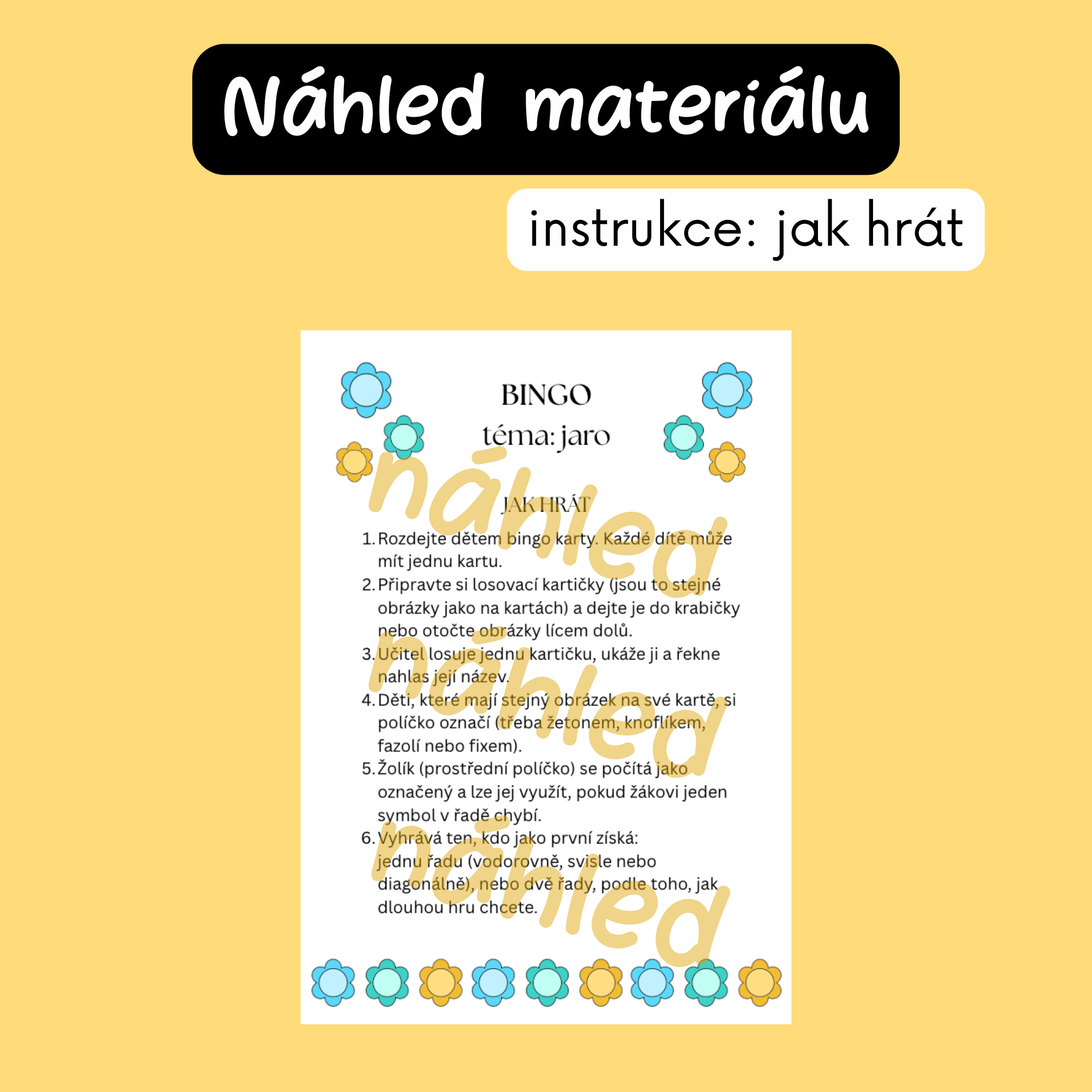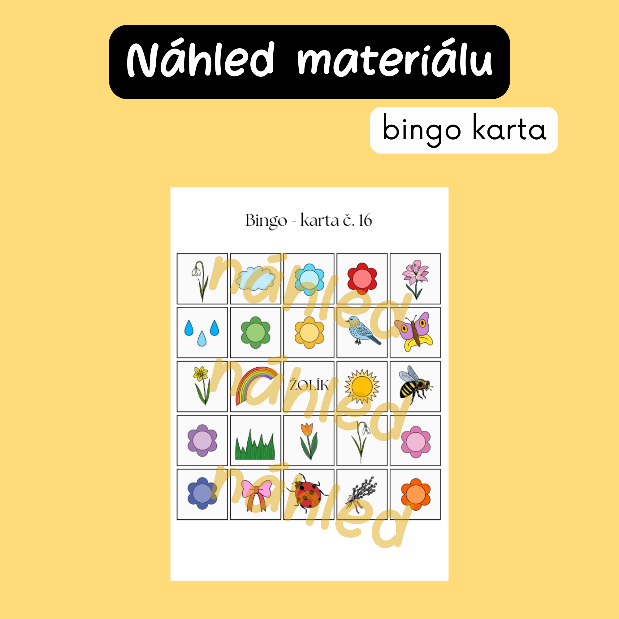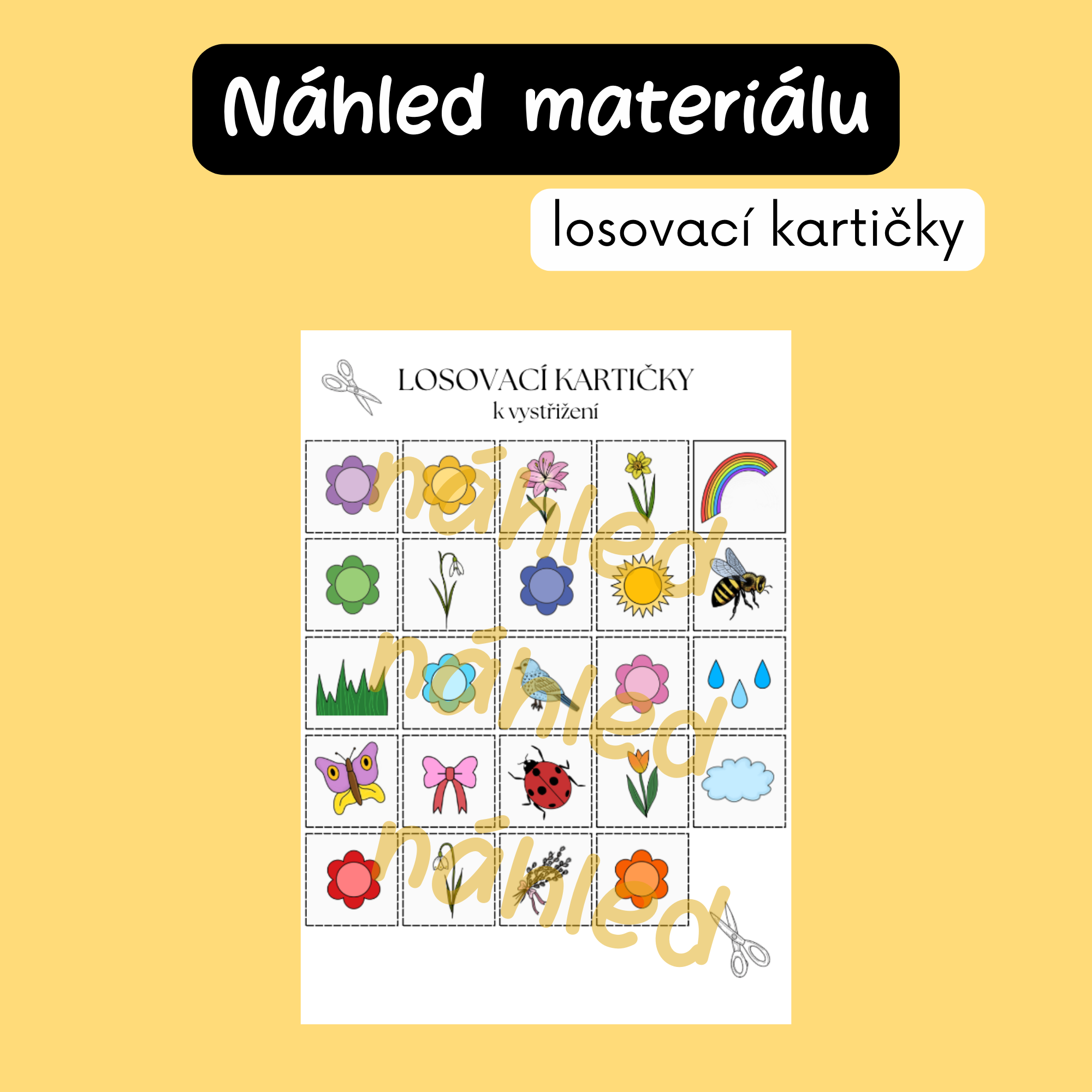 - hrací karty 5×5 s jarními ilustracemi
