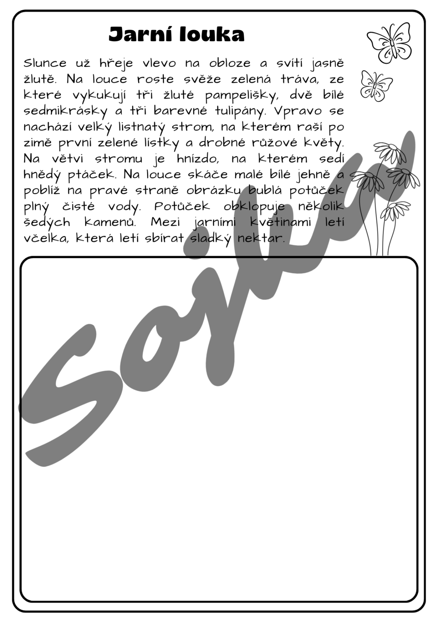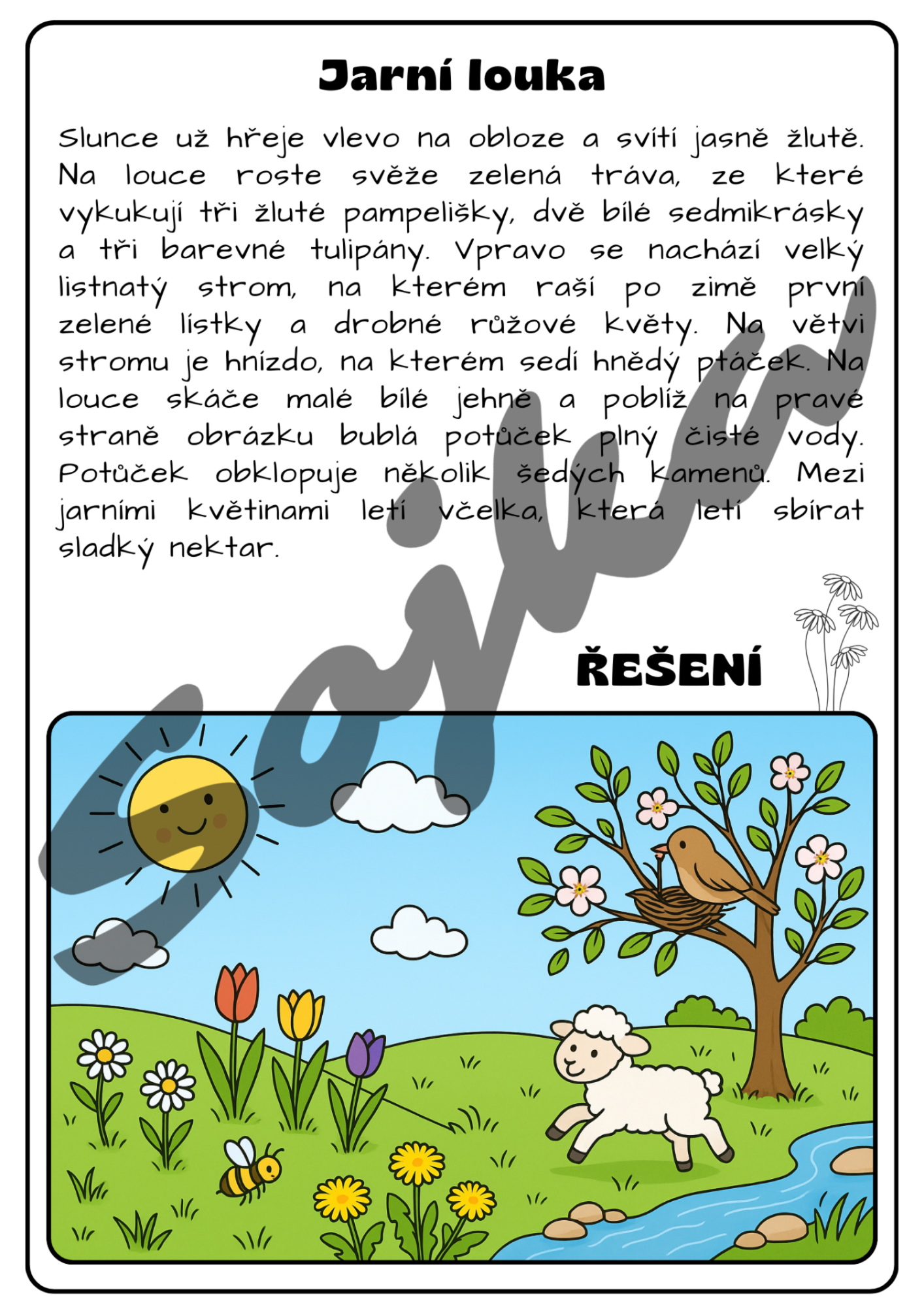 Kreslete podle zadání jarní obrázky. Materiál obsahuje 10 textů a k nim 10 originálních omalovánek. Podpoříte schopnost porozumět textu, jemnou motoriku, představivost a fantazii. Vhodné do Čj, Vv i třídnických hodin.
