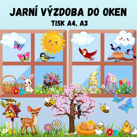 🌸JARNÍ VÝZDOBA DO OKEN🌸Soubor obsahuje veselé barevné jarní obrázky, které jsou vhodné jako výzdoba do oken ve třídách, chodbách nebo na nástěnku. Obrázky, které se nacházejí v náhledu, jsou také součástí souboru. Materiál je rozdělen na 2 části: obrázky připravené k tisku ve formátu A4 a A3.