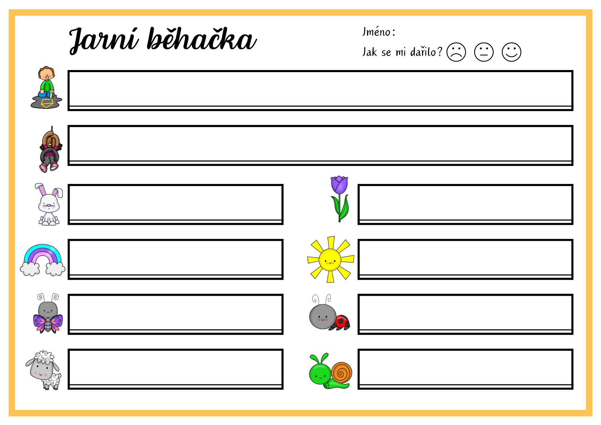 Soubor je zaměřen na rozvoj opisování slov a vět, čtení s porozuměním a grafomotorických dovedností prostřednictvím pohybové aktivity – běhačky. Děti čtou slova nebo věty rozmístěné po třídě a přesně je zapisují do záznamového archu.
