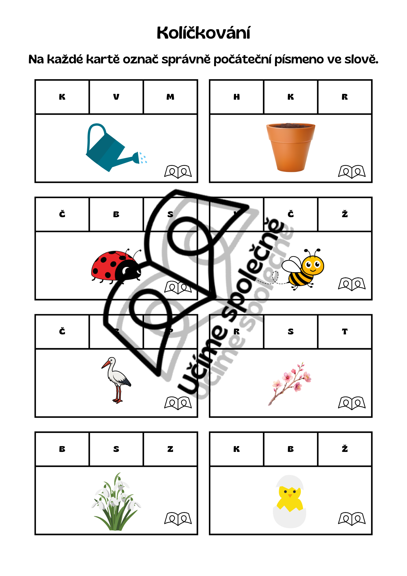 - Kartičky na kolíčkování - verze počáteční písmeno