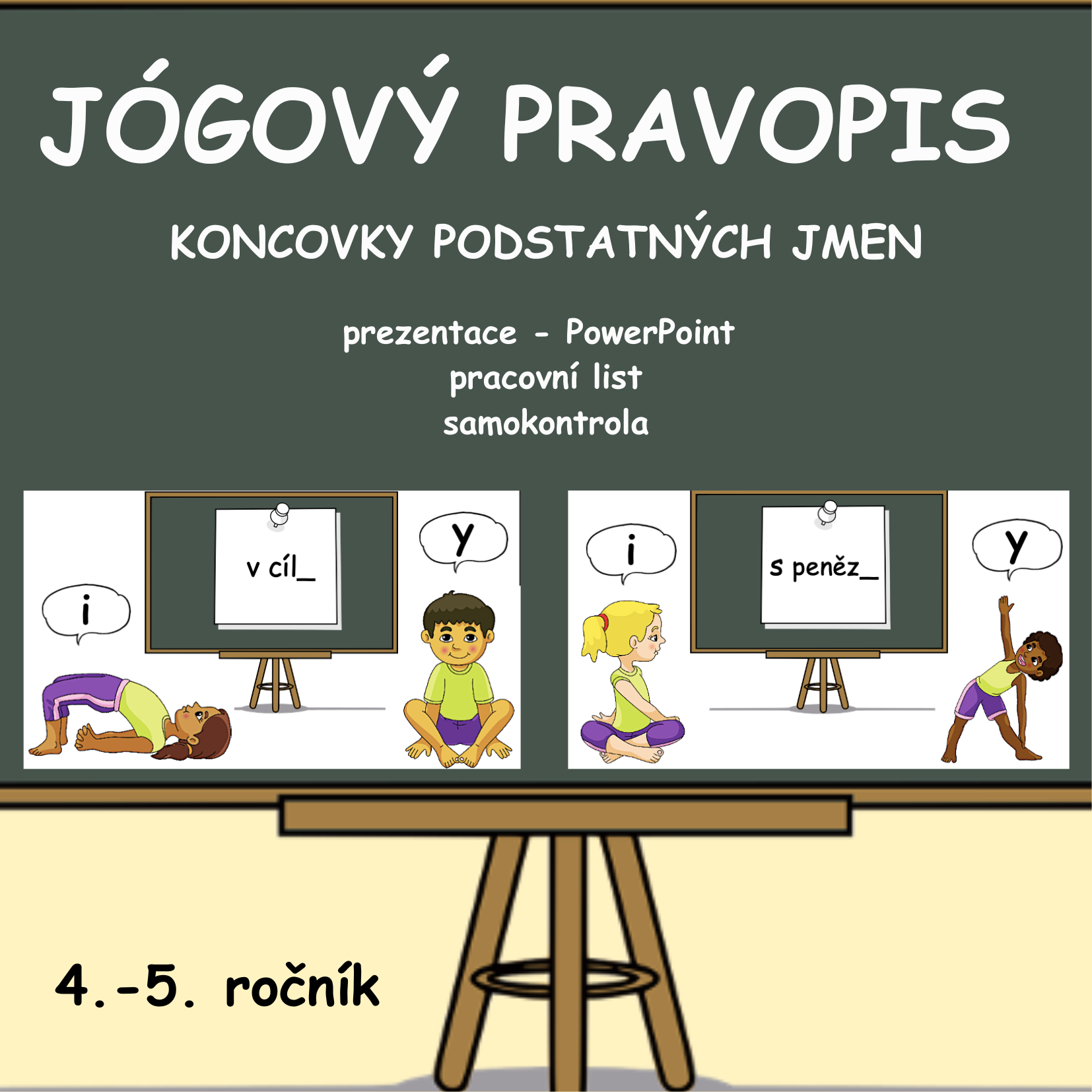Soubor ZIP obsahuje prezentaci s 15 pravopisnými jevy (koncovky podstatných jmen) + řešení a pracovní list. Žáci odpovídají pomocí jógového cviku. Při procvičování využívají pohyb. Po dostatečném procvičení může učitel použít přiložený pracovní list, který žáci vyplní na známky.