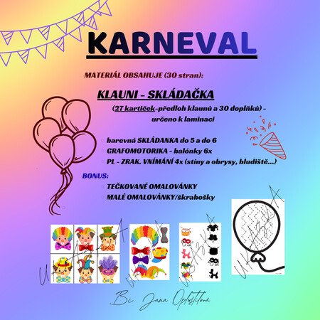 Tematický vzdělávací materiál k období karnevalu, vhodný pro děti v mateřské škole a mladší školní věk.