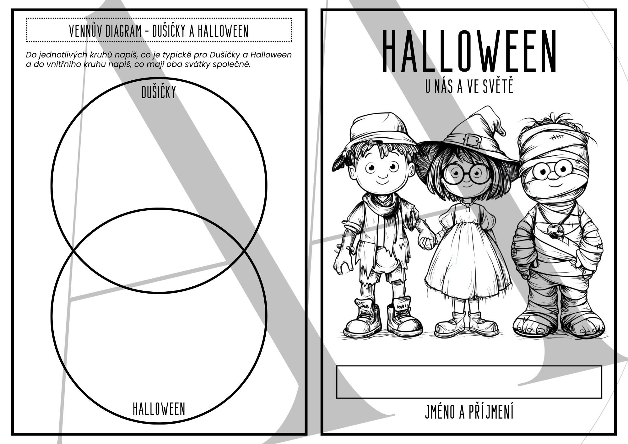 - Vennův diagram – porovnání oslav Halloweenu a Dušiček (podpora kritického a srovnávacího myšlení).
