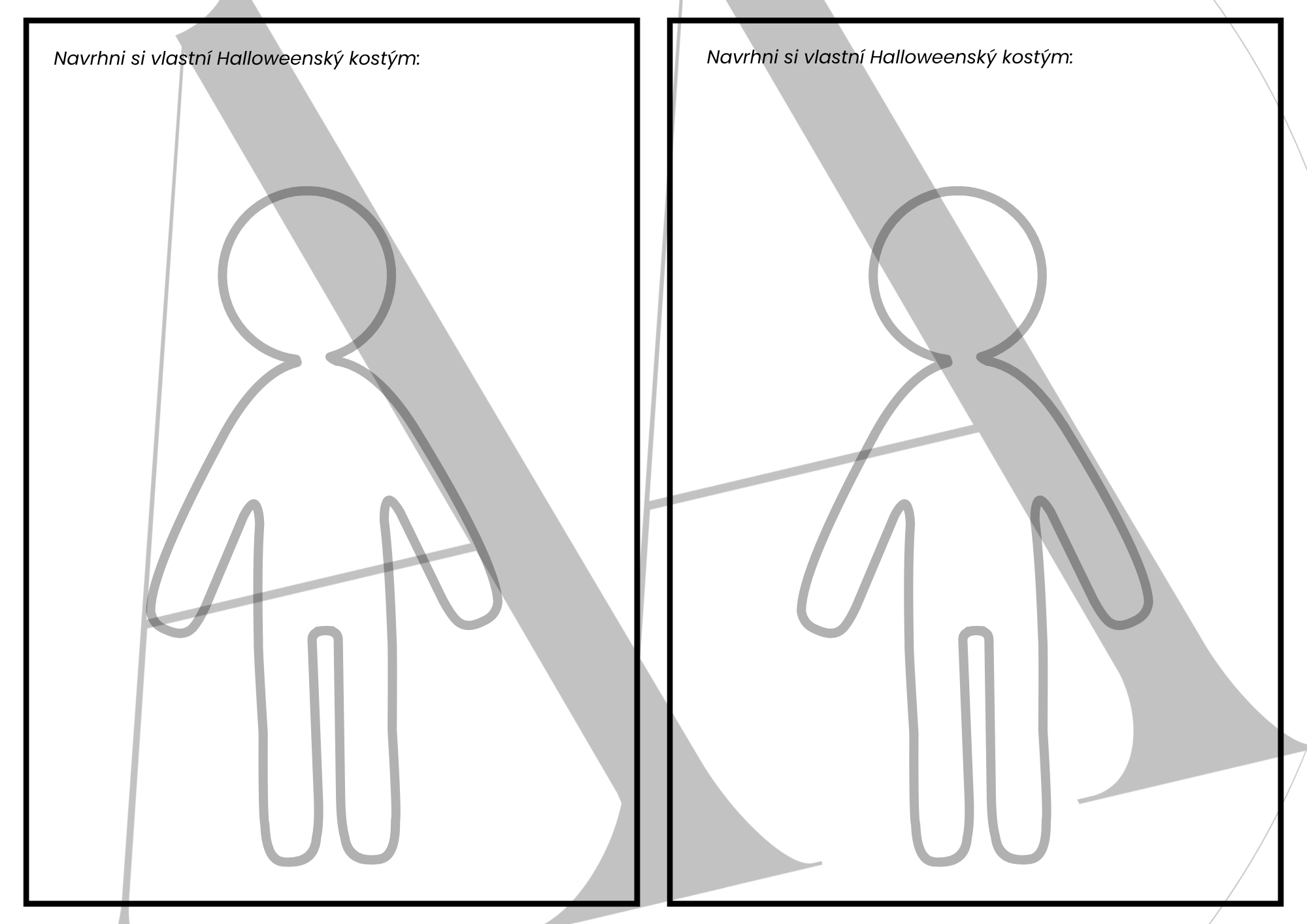 - Kreativní úkol (2x A5) - kreslení Halloweenského kostýmu.