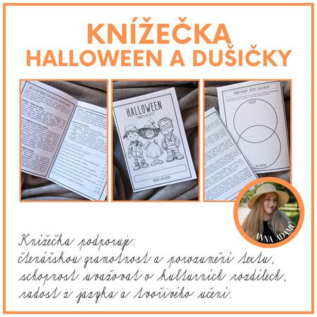 Cíl: Podpořit jazykové dovednosti žáků, rozvíjet jejich čtenářskou gramotnost, slovní zásobu a schopnost vyjadřovat se tvořivě a s porozuměním. Knížečka zároveň posiluje kulturní povědomí a porozumění rozmanitosti světa prostřednictvím srovnávání tradic spojených se svátkem Halloween a podobnými svátky v různých zemích. Aktivity rozvíjejí logické myšlení, pozornost, pravopis, slovní zásobu a schopnost pracovat s textem i emocemi.
