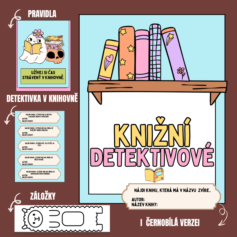 Knižní detektivové/ gramotnost čtenáře, knihovna, orientace v knihovně, kniha