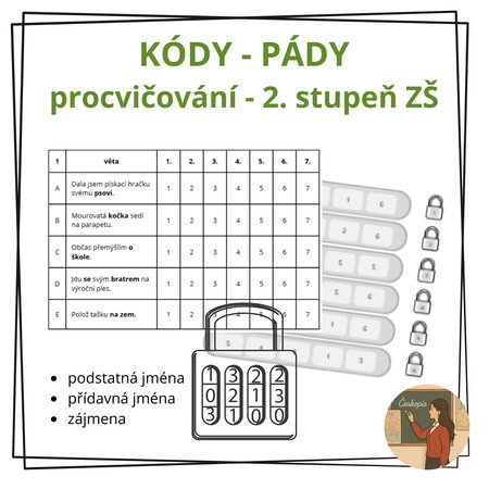 Připravila jsem pro vás hravou aktivitu, která žákům pomůže upevnit znalosti z oblasti tvarosloví. Zaměřuje se na procvičování pádů, především podstatných jmen, ale i přídavných jmen a zájmen. Aktivita má podobu „kódovacího úkolu“.