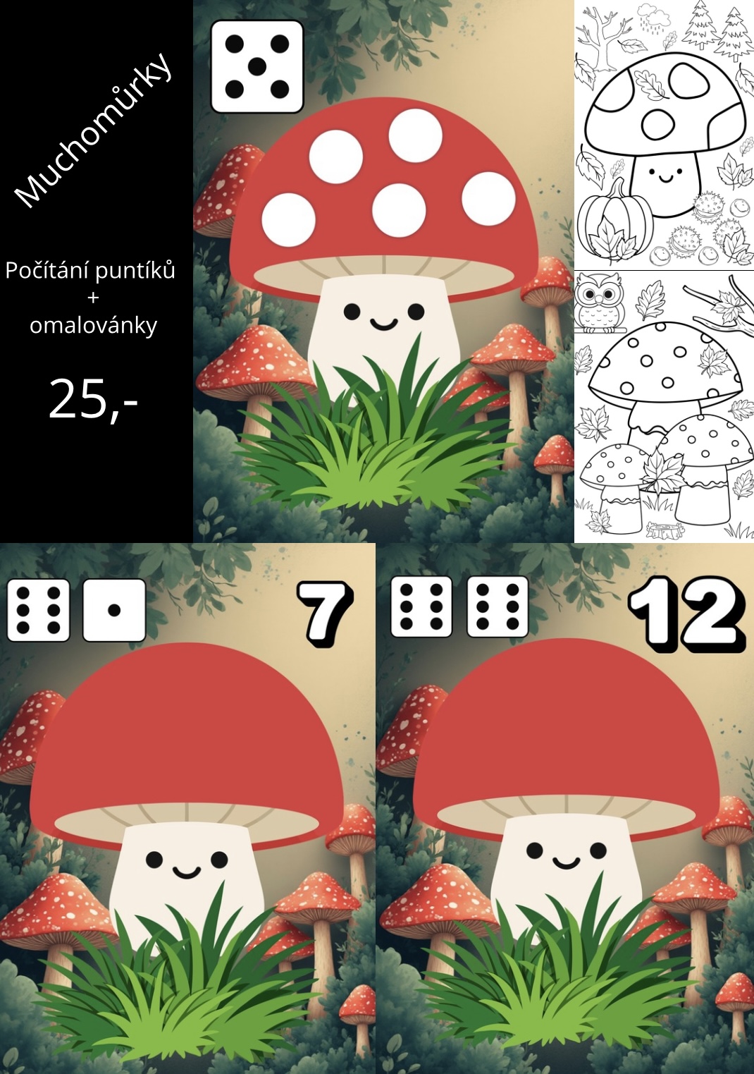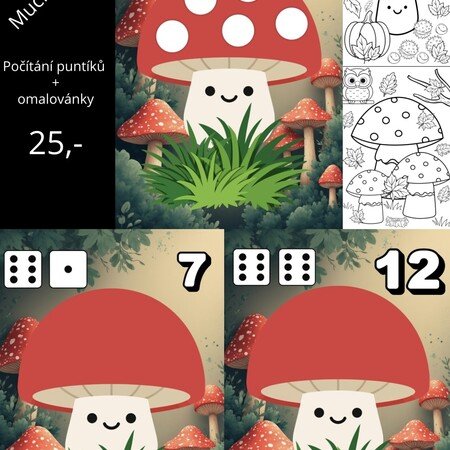 Soubor obsahuje kartičky s houbičkami a počty – stačí vytisknout a zalaminovat.