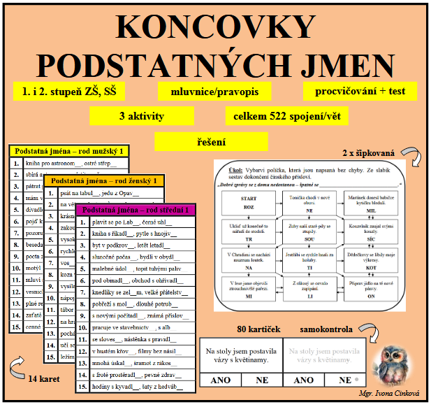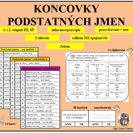Vyzkoušejte ZDARMA kartu k procvičování koncovek podstatných jmen - mix pravopisných jevů.