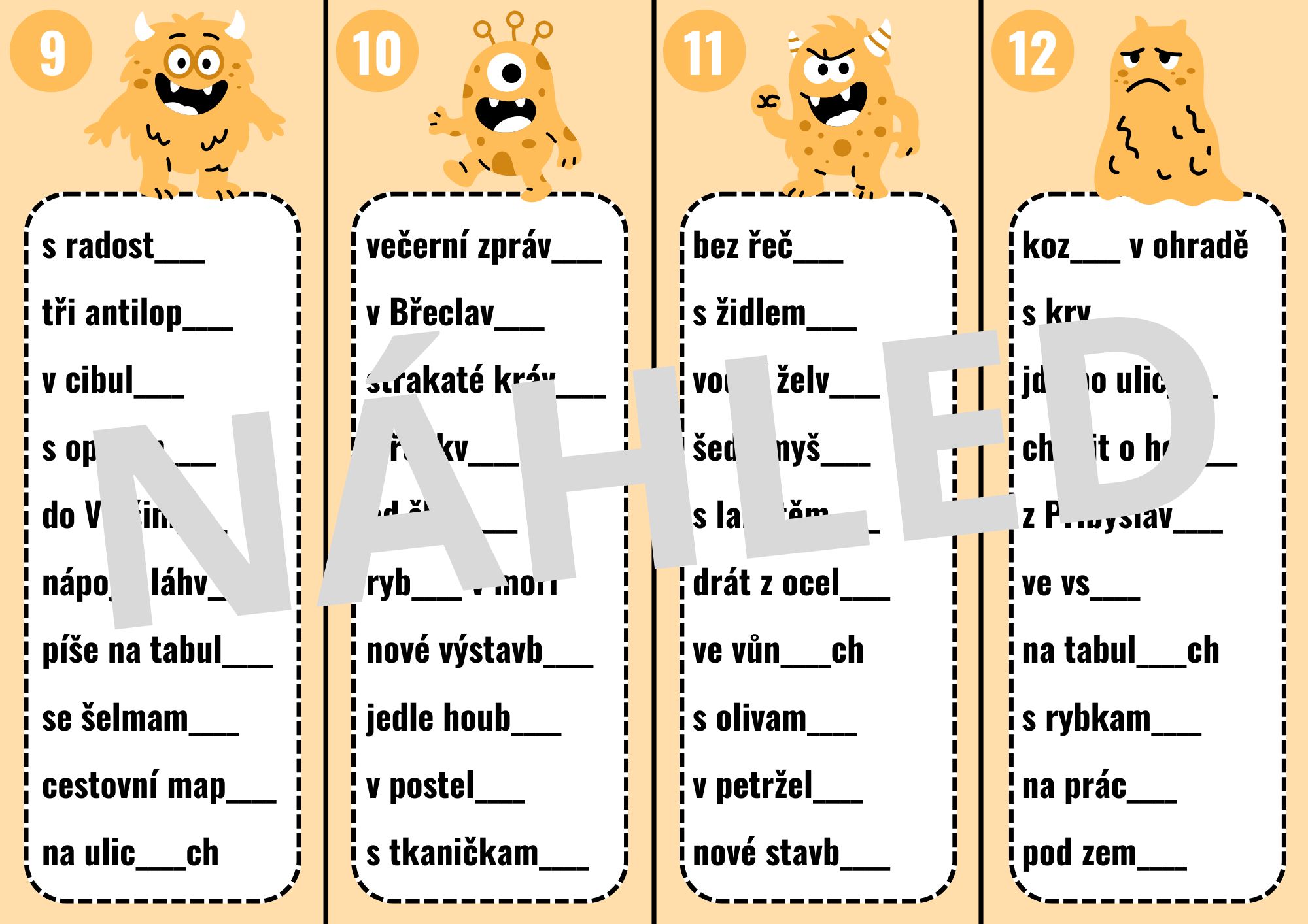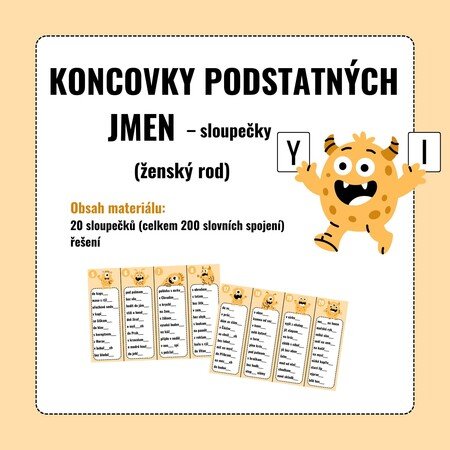 Sloupečky na procvičování koncovek podstatných jmen ŽENSKÉHO RODU v motivu příšerek.