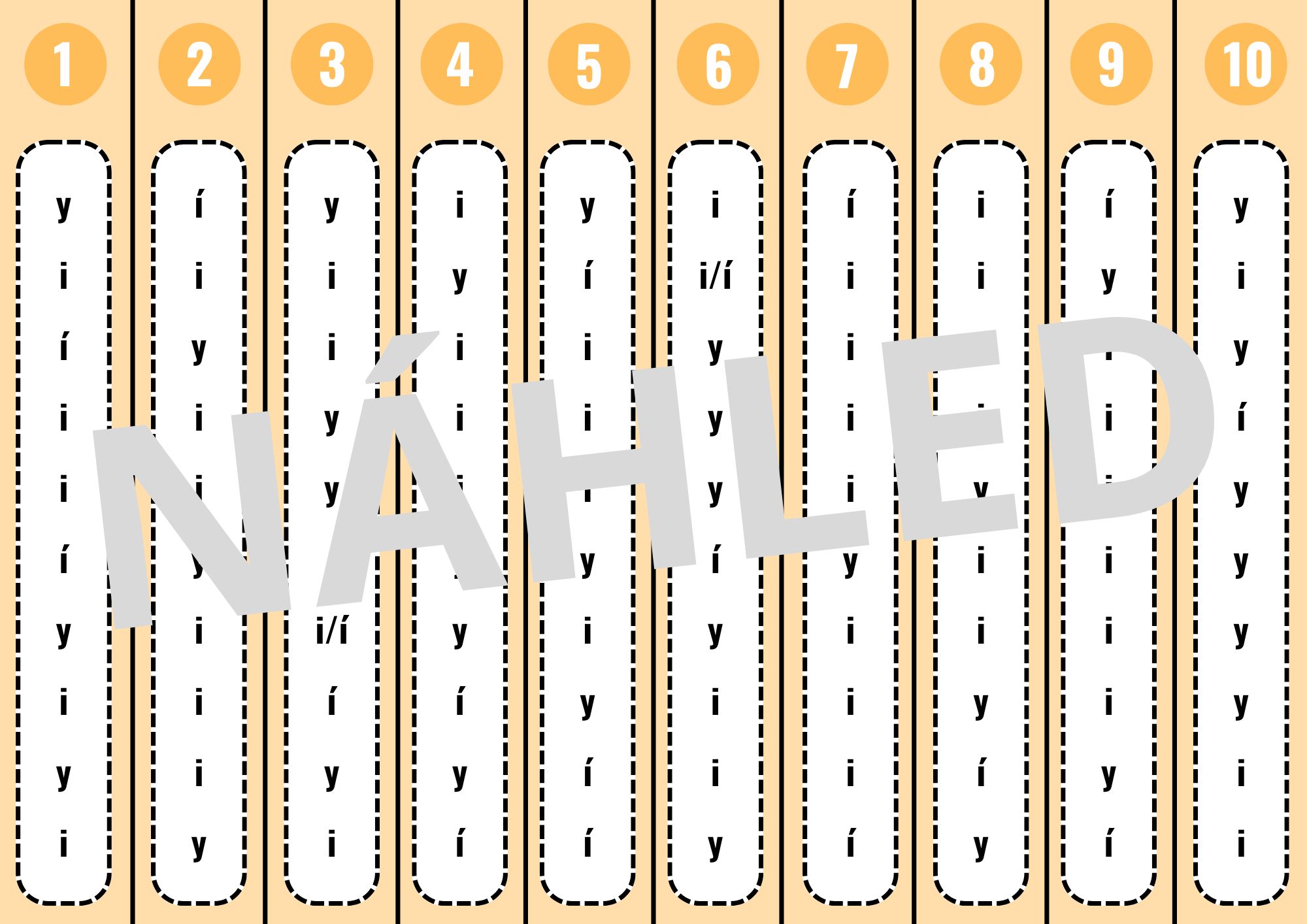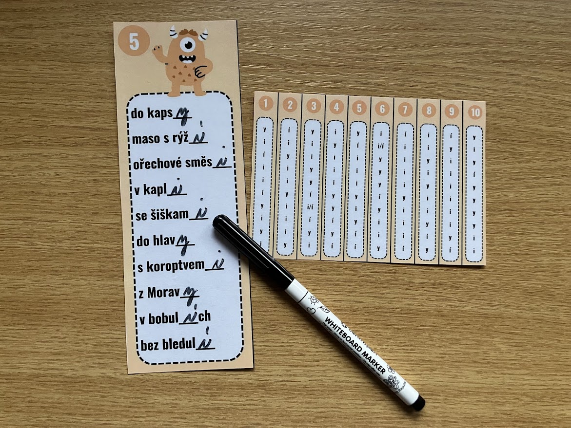 Každý žák si vybere jeden sloupeček a doplní I/Í nebo Y/Ý u daných slov pomocí fixy na mazací tabulku nebo slova přepíše do sešitu.