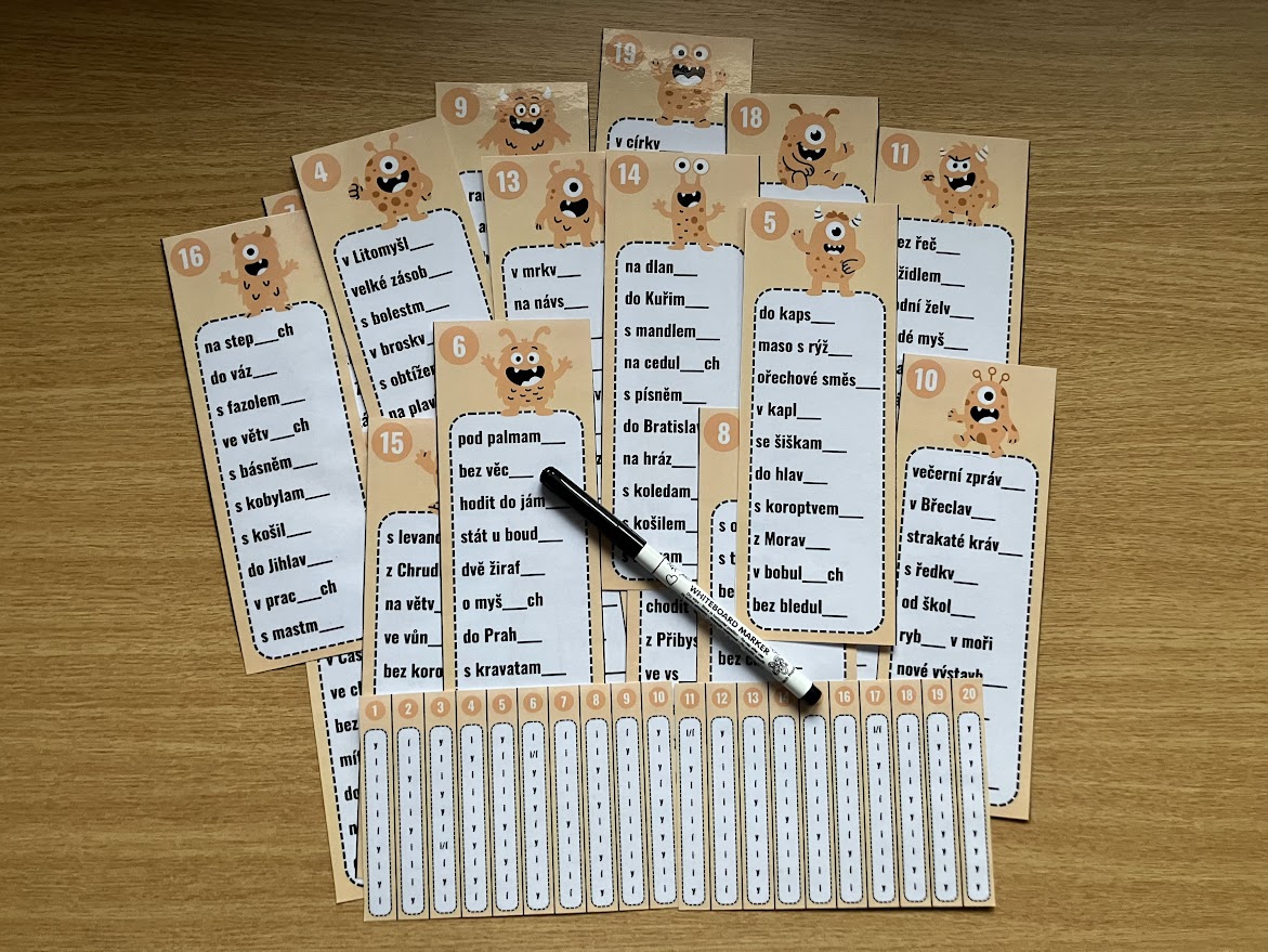 Karty vytiskněte, zalaminujte a rozstříhejte na jednotlivé sloupečky.
