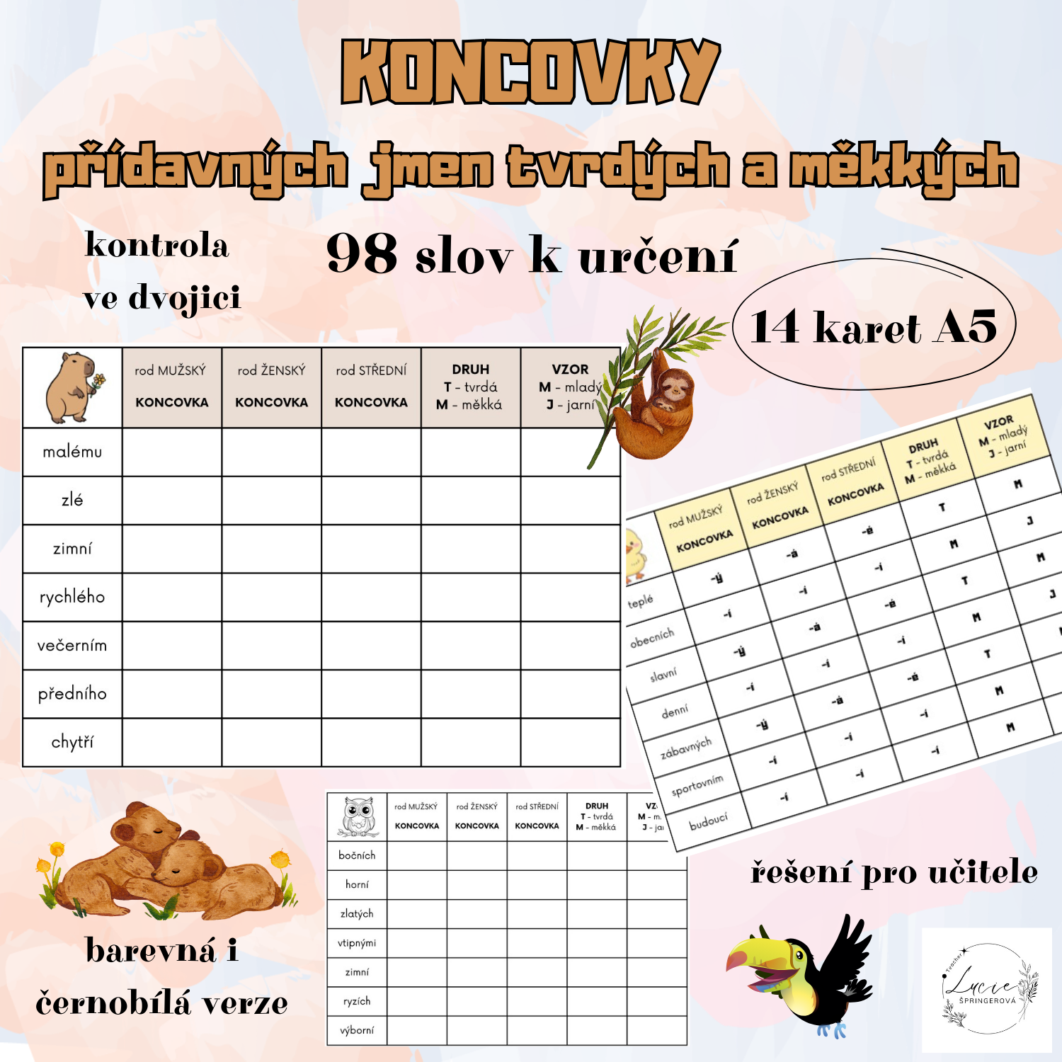 - Procvičit koncovky přídavných jmen v 1. pádě jednotného čísla pro mužský,