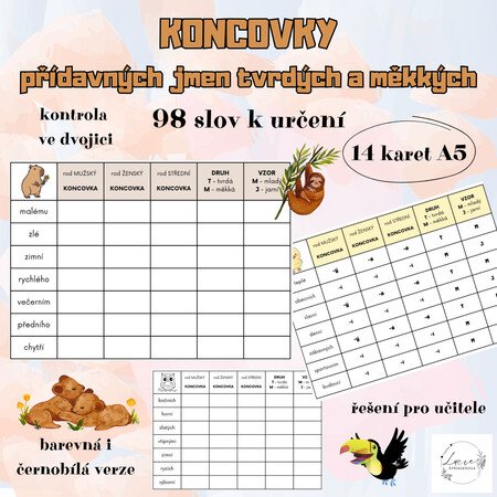 - Procvičit určování druhu a vzoru přídavného jména (tvrdé / měkké)