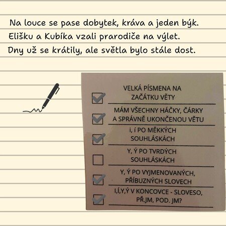 ✅ háčky, čárky a správně ukončenou větu - Může si jednotlivé body odškrtávat, podle toho, co si už zkontrolovalo.