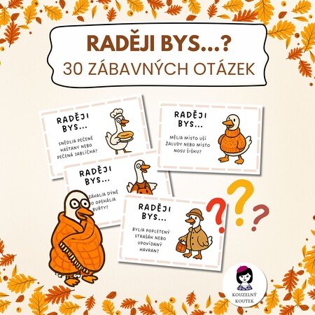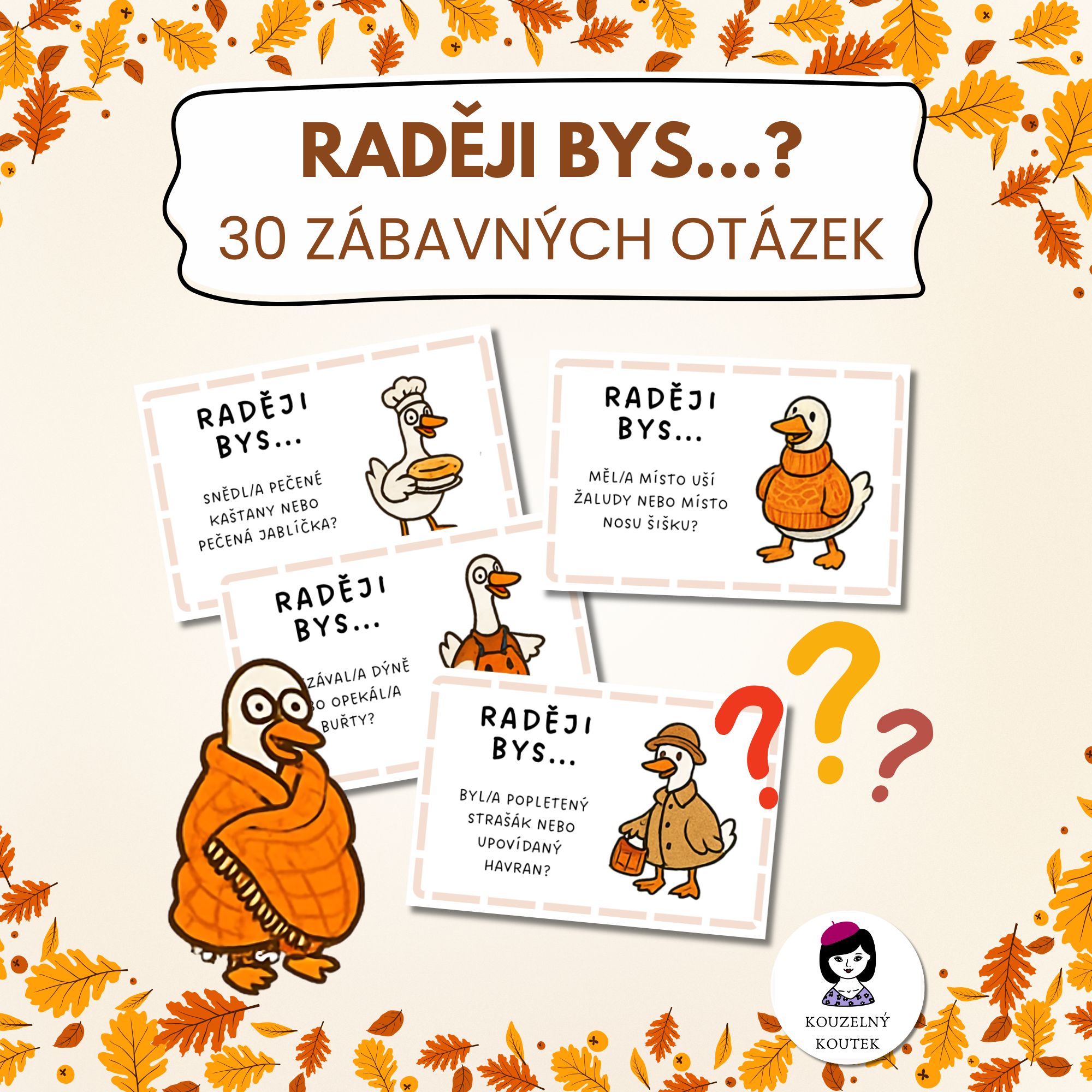 Každá kartička obsahuje jednu otázku se dvěma zábavnými možnostmi. Cílem je vybrat, co by dítě raději zažilo nebo udělalo.