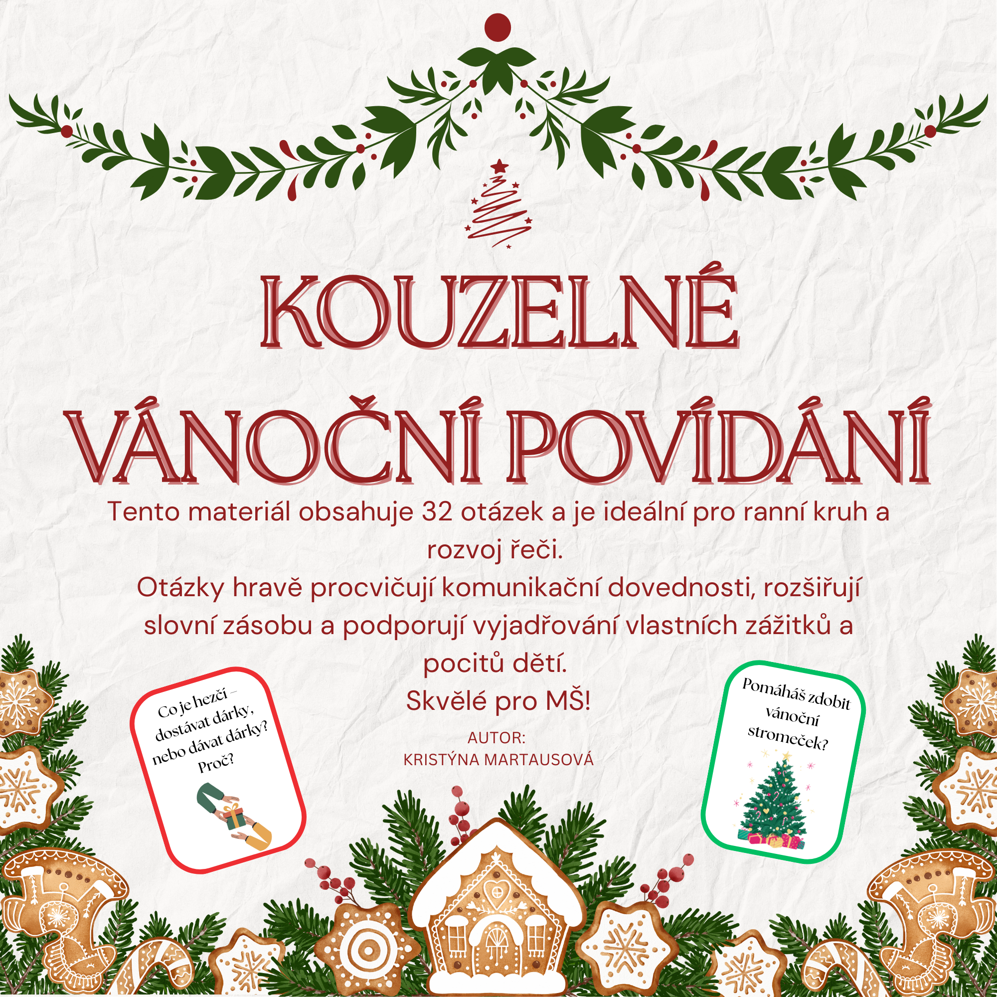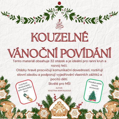 Ponořte se s dětmi do kouzelné vánoční atmosféry! Tento ucelený materiál je ideálním nástrojem pro ranní kruh v mateřské škole (MŠ) a skvěle poslouží k rozvoji komunikačních a řečových dovedností.