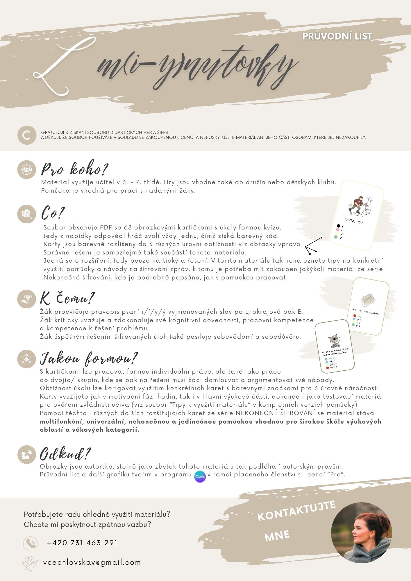 Součástí tohoto materiálu nejsou kompletní návody k šifrování a tipy k využití pomůcek série nekonečné šifrování, jedná se pouze o rozšíření a pro metodiku práce s kartami a šifrovací klíče je třeba mít zakoupenou jakoukoli kompletní verzi z této série.
