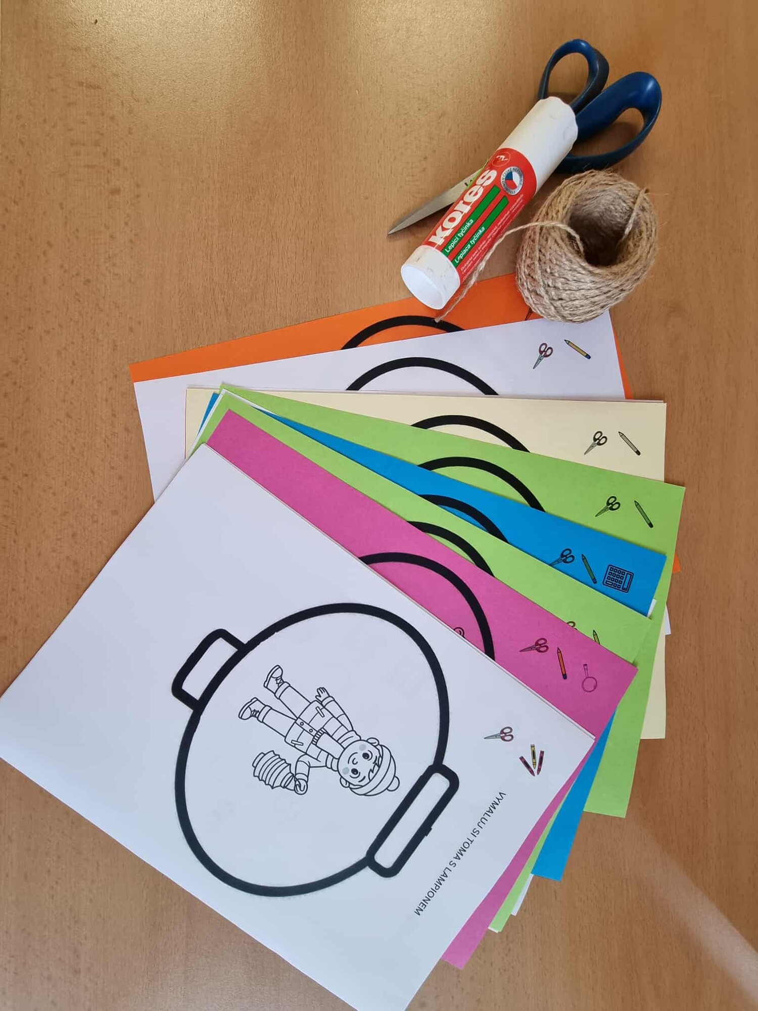 - Připravte pastelky, lepidla, nůžky a provázky na zavěšení.