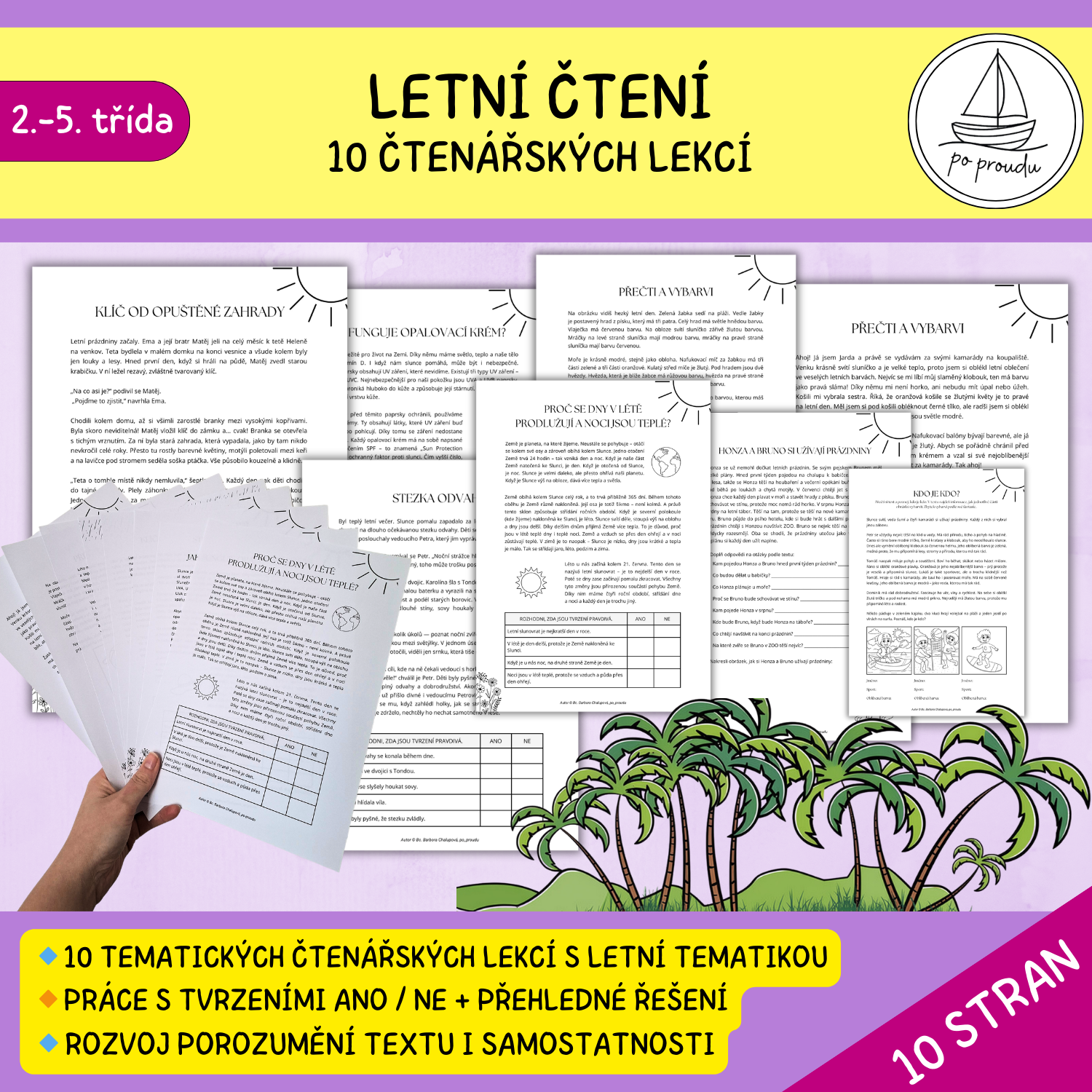 Soubor přináší 10 různorodých textů se tematikou léta a prázdnin, které rozvíjejí čtenářskou gramotnost dětí zábavnou a přístupnou formou. Texty jsou doplněné o otázky na ANO/NE. ☀️