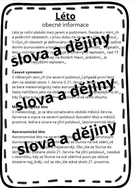 - Informační texty: Obecná fakta, astronomické a meteorologické vymezení léta.