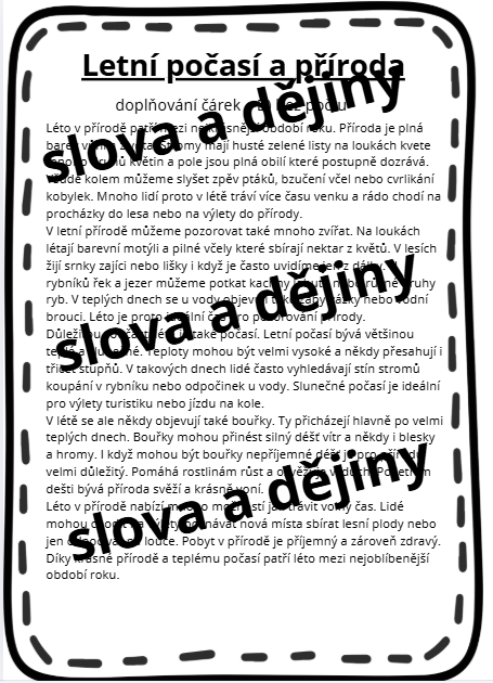 - Doplňování čárek v textech o počasí a dovolené.