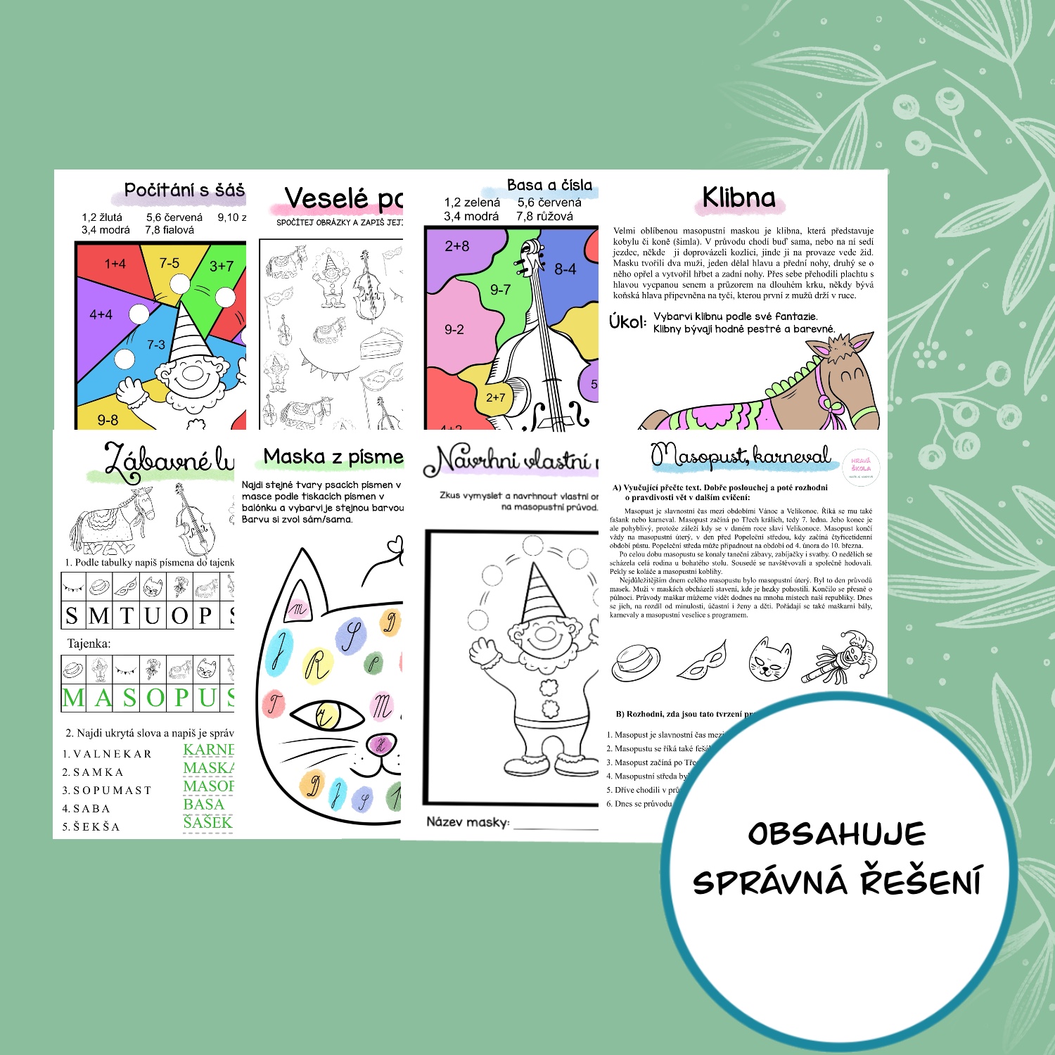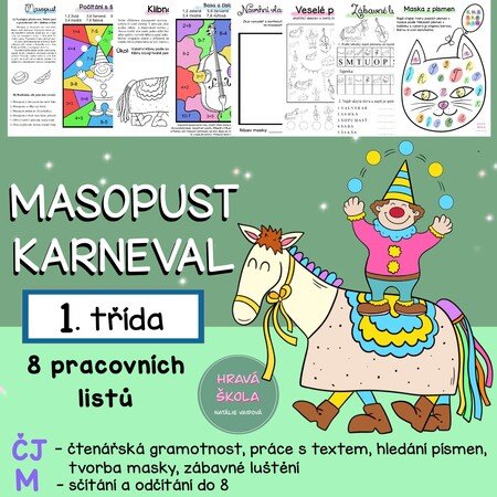 MATERIÁL obsahuje 8 PL s TEMATIKOU MASOPUSTU, KARNEVALU do ČJ a M pro 1. TŘÍDU ❄️