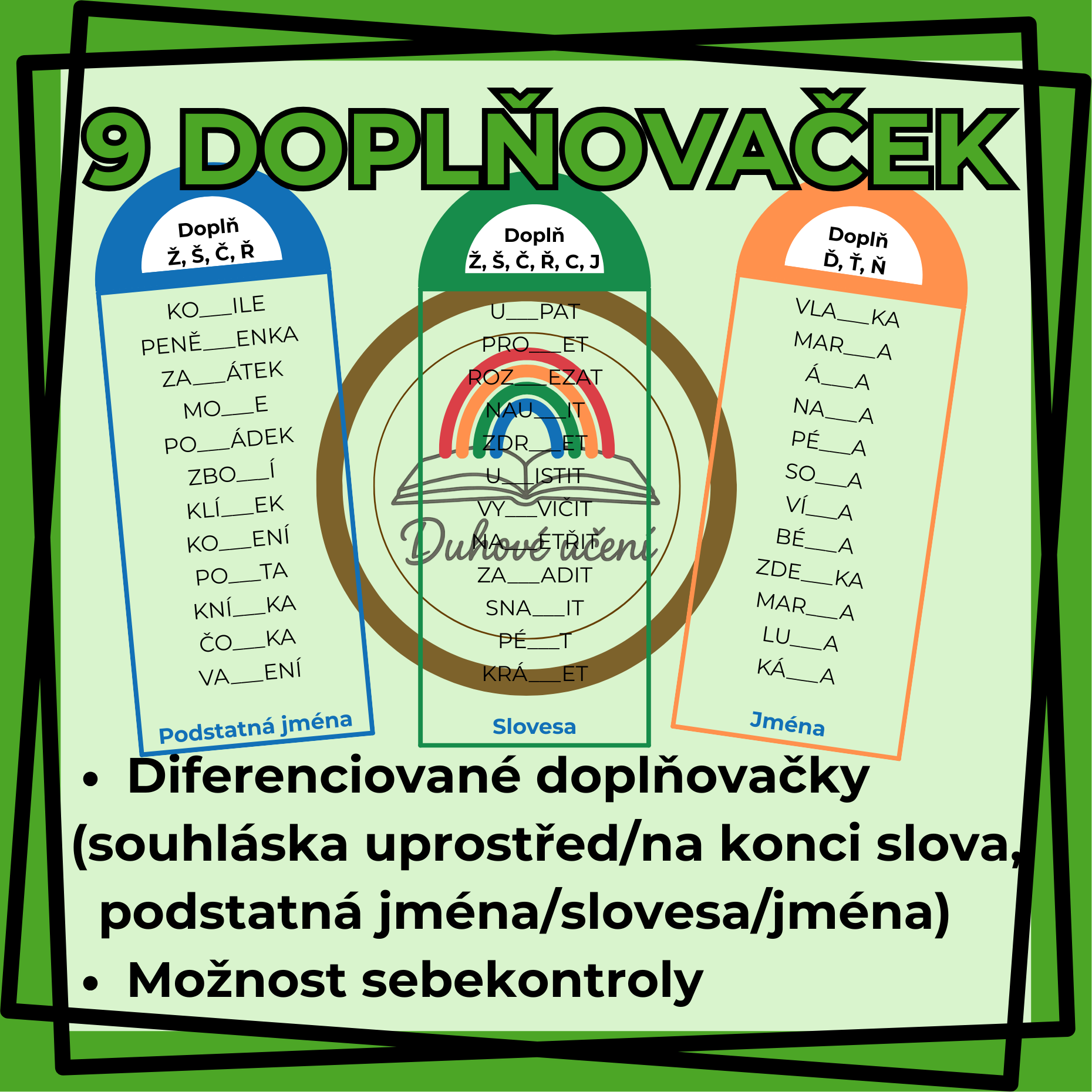 Materiál je určený k procvičení a upevnění měkkých souhlásek.