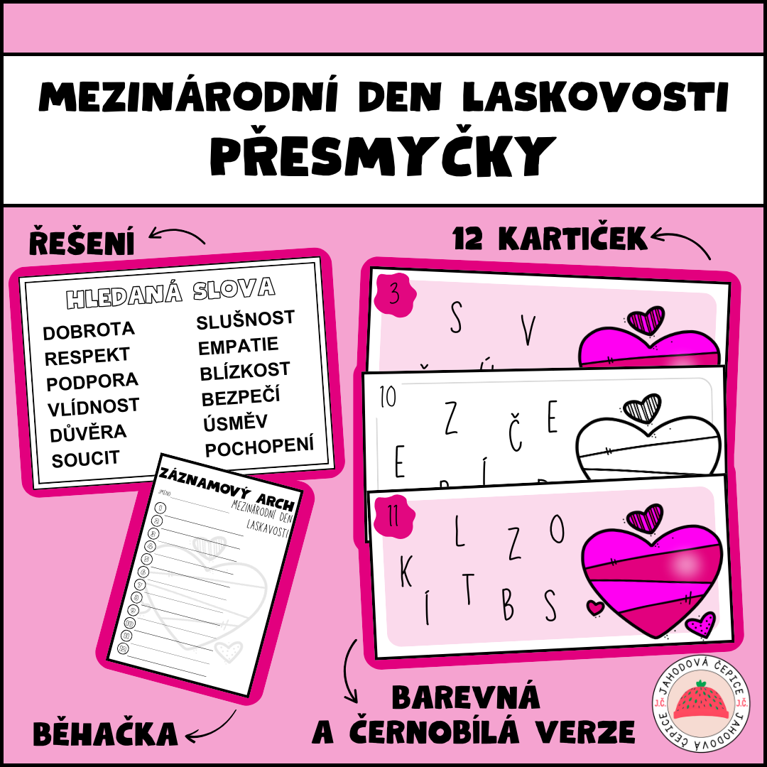 Tato zábavná hra je ideální pro žáky, kteří si chtějí otestovat své dovednosti při luštění přesmyček. Žáci si procvičí svou slovní zásobu a kreativitu při luštění přesmyček spojených s tematikou Mezinárodní den laskavosti.