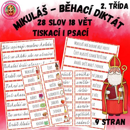 Materiál obsahuje 28 jednoduchých slov a 18 nenavazujících vět na téma Mikuláš. Věty jsou krátké, srozumitelné a vhodné pro žáky 2. ročníku. Děti pracují s textem pohybově, čímž se podporuje soustředění, čtení i psaní.