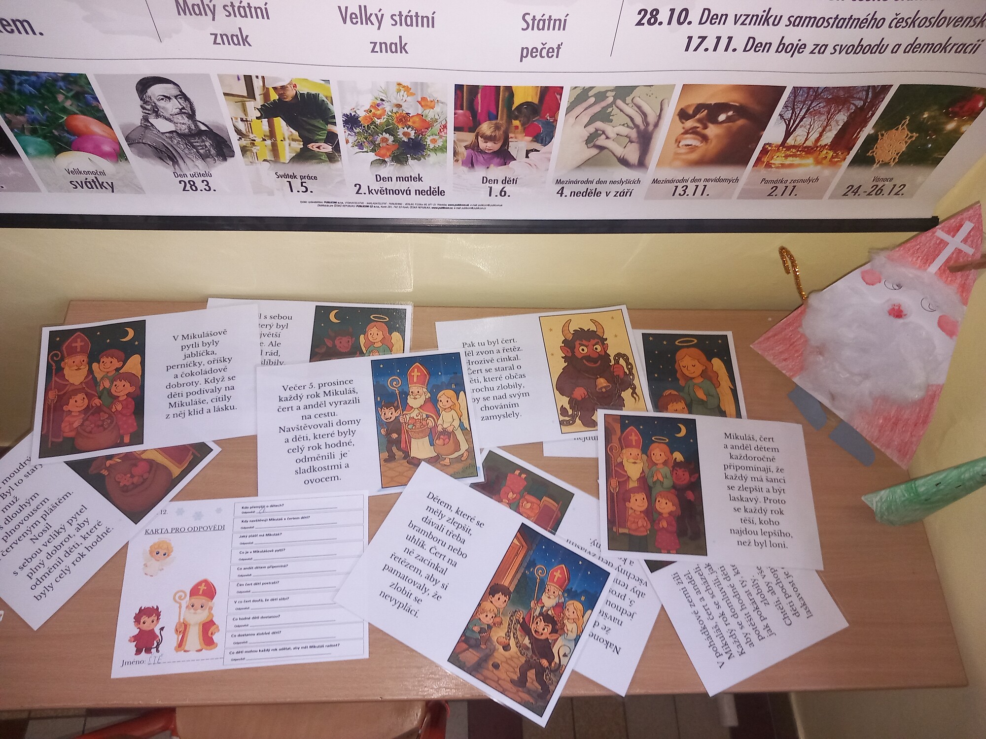 Hra pokračuje, dokud všechny děti neodpoví na všechny otázky. Celá aktivita je pohybová – děti nesedí jen v lavici, ale aktivně hledají a čtou. Texty a obrázky na kartách jim navíc pomáhají zapamatovat si tradice spojené s Mikulášem, čertem a andělem.