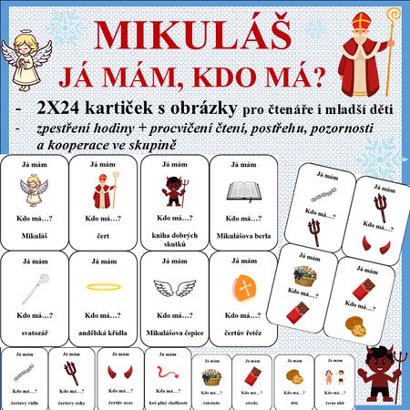 Díky hře „Já mám… Kdo má…?“ zpestříte hodinu, uvedete děti do tématu o Mikulášovi a procvičíte s Vašimi dětmi hravou formou čtení, pozornost, postřeh a kooperaci ve skupině.
