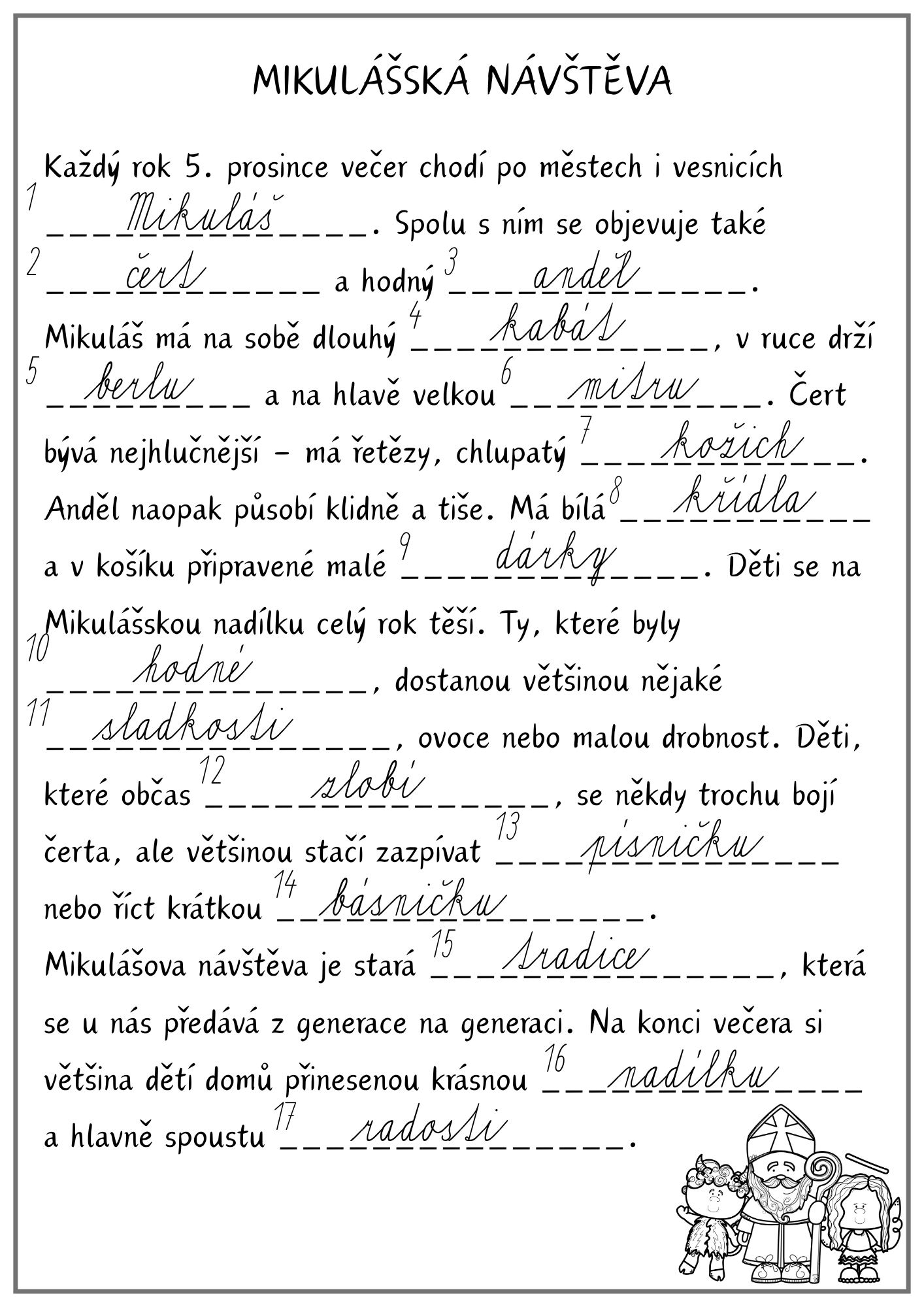 - čtenářský text o Mikulášovi, čertovi a andělovi