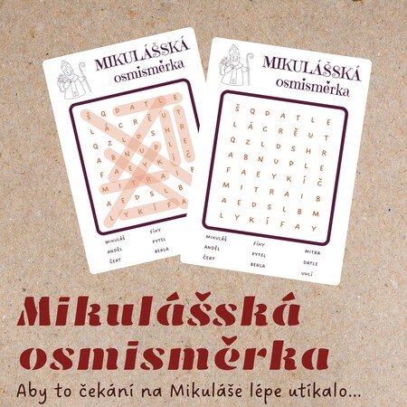 Dlouhé chvíle čekání na mikulášskou družinu můžete dětem ukrátit osmisměrkou.