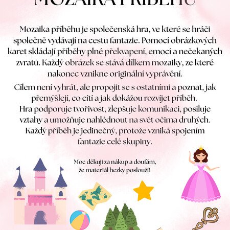 Pomocí několika kartiček s obrázky můžete s dětmi složit originální příběhy, které procvičují a rozvíjejí mluvení u dětí a posilují si svoji fantazii. 👑🗝️