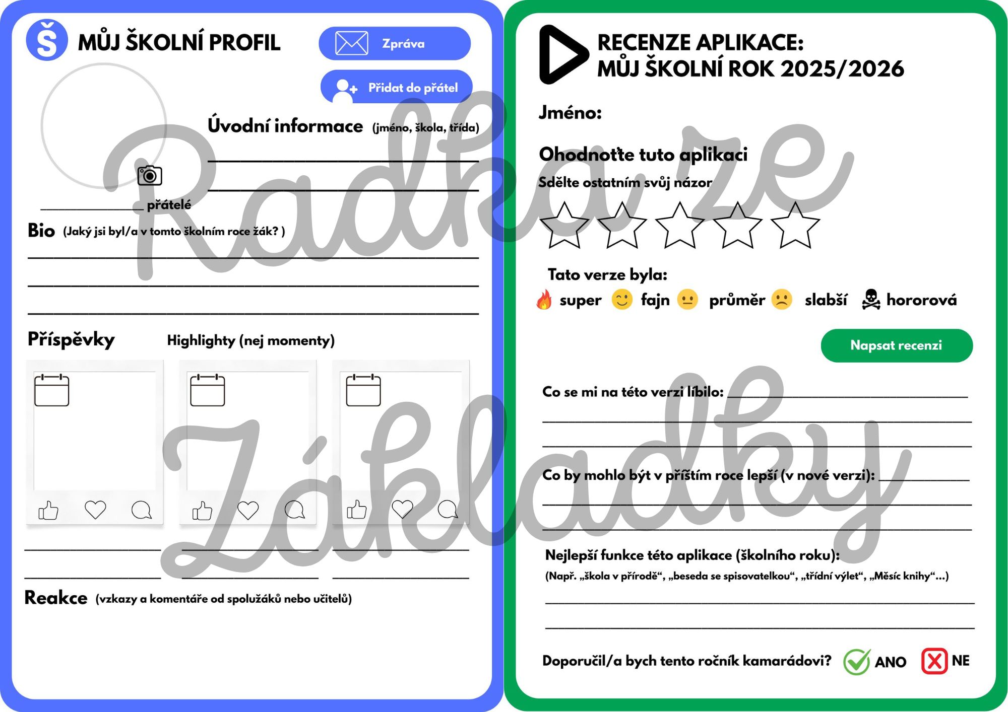 Strana 4 a 5– Recenze aplikace: MŮJ ŠKOLNÍ ROK 2025/2026 nebo ŠKOLNÍ PŘEDMĚT