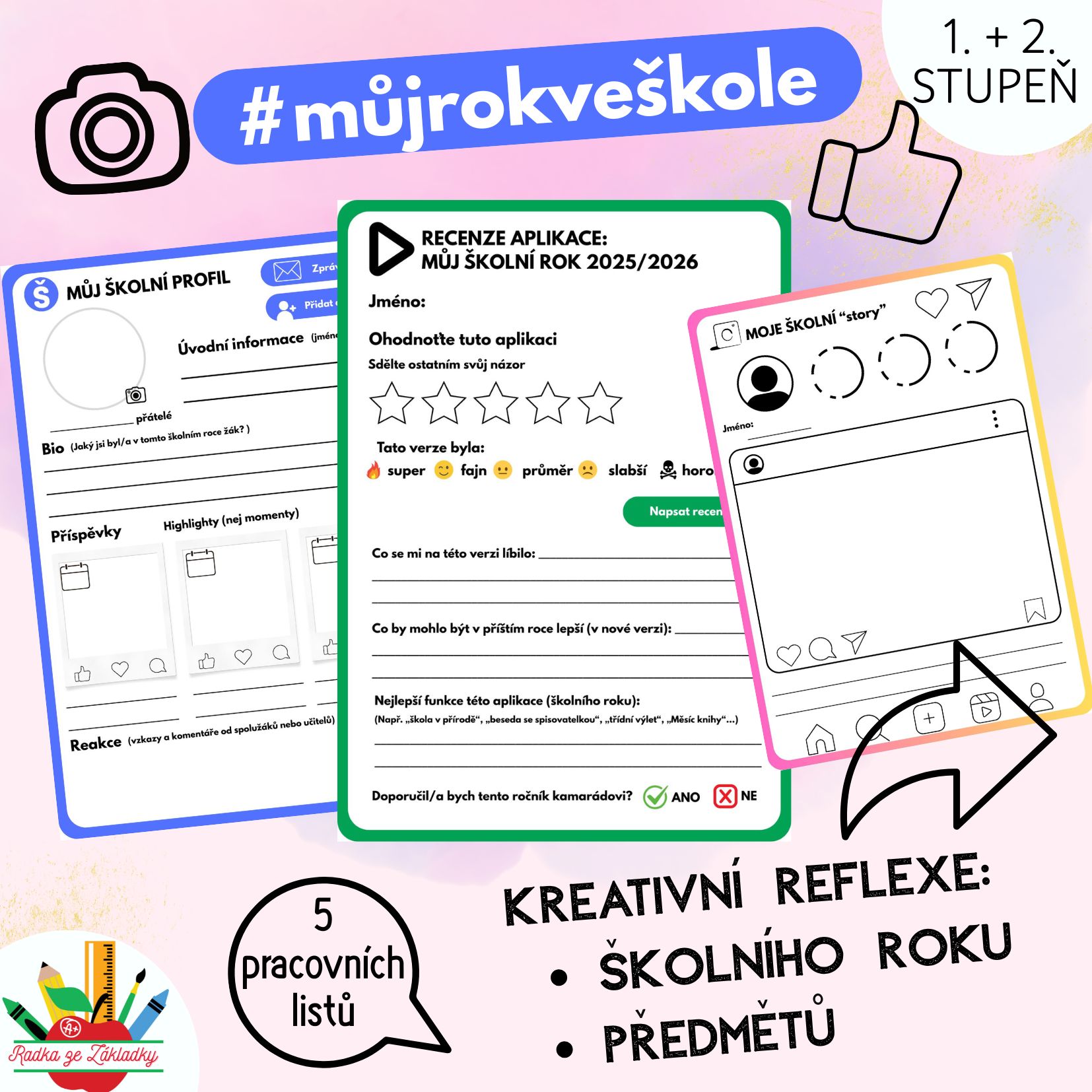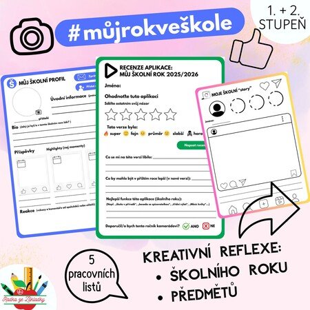 Tento soubor pracovních listů slouží jako netradiční a zábavná forma reflexe školního roku a předmětů, která je blízká dnešním žákům díky inspiraci světem sociálních sítí a aplikací.