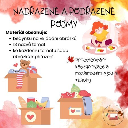 Interaktivní pomůcka podporující rozvoj slovní zásoby, třídění a logické myšlení. Děti pracují s „bedýnkou“, na kterou lze upevnit zvolené téma a k němu přiřazovat obrázky. Hra obsahuje celkem 13 témat a 161 obrázků k zařazení.