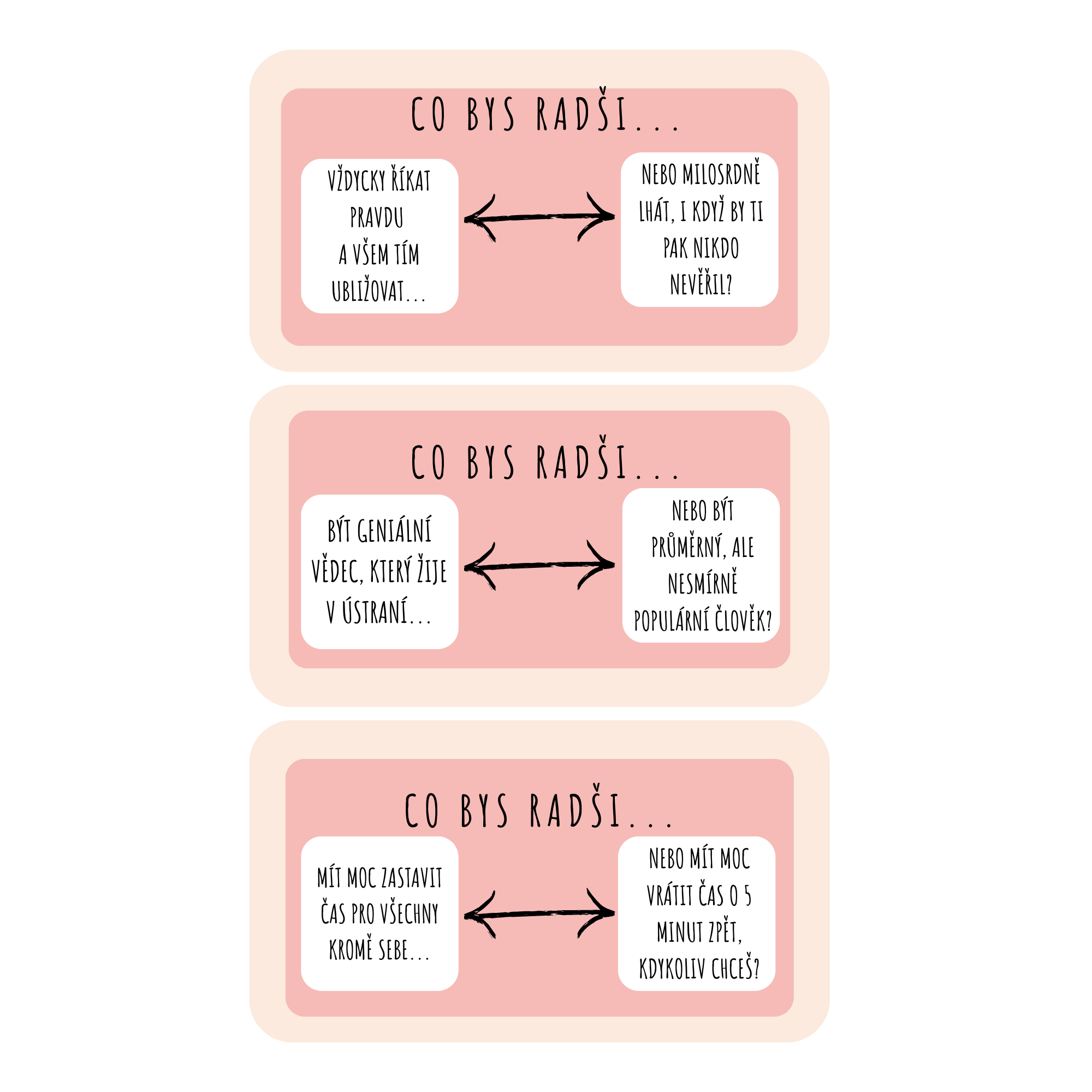 - 21 originálních otázek zaměřených na moderní technologie, morální dilemata, školní život i osobní hodnoty.