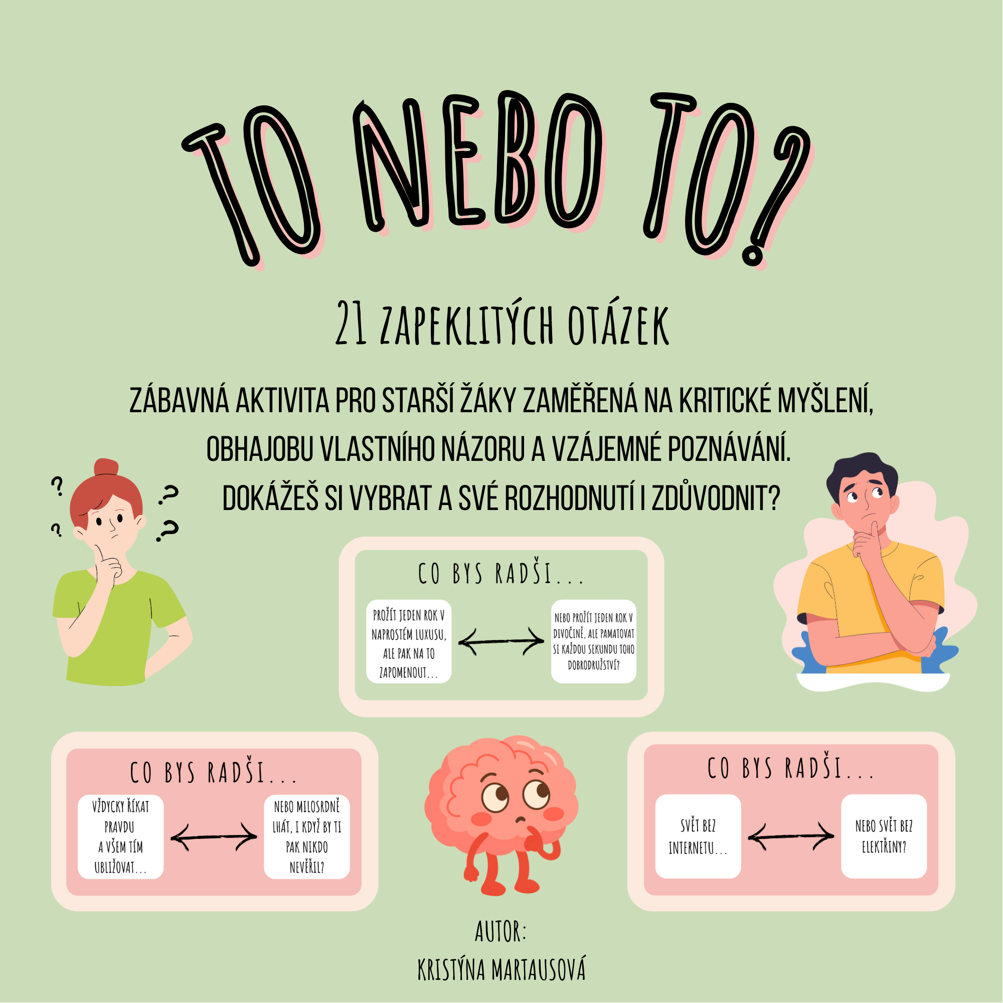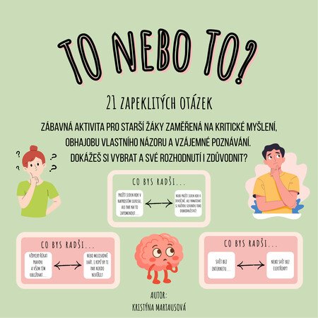 Tato sada aktivit „To nebo To“ není jen obyčejná hra – je to nástroj pro rozvoj kritického myšlení a argumentace.