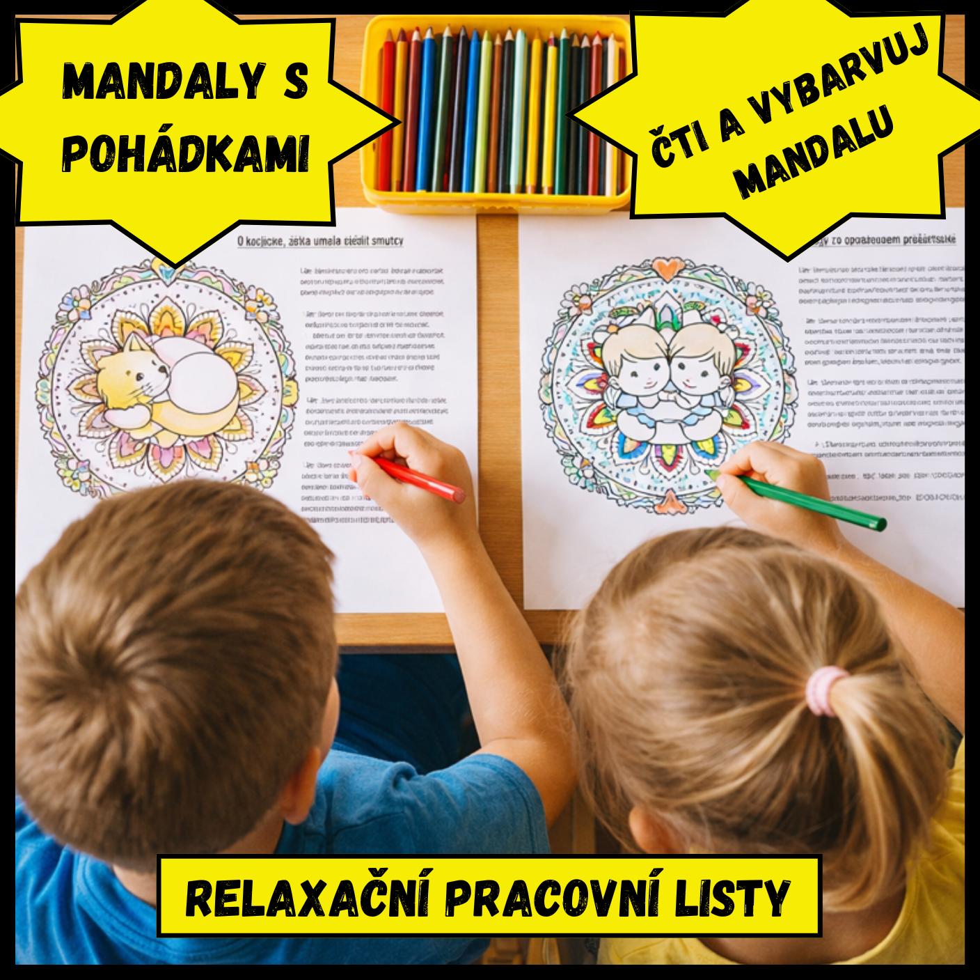 Tento materiál jsem vytvořila z potřeby mít vždy po ruce něco, co dětem nabídnout ve chvíli, kdy se potřebuji k některým věnovat chvilku individuálně. V každodenním tempu výuky často hledáme prostor, kde by děti mohly zpomalit, odpočinout si od soustředění ve výuce. Právě proto vznikly pohádky propojené s vybarvováním mandal.