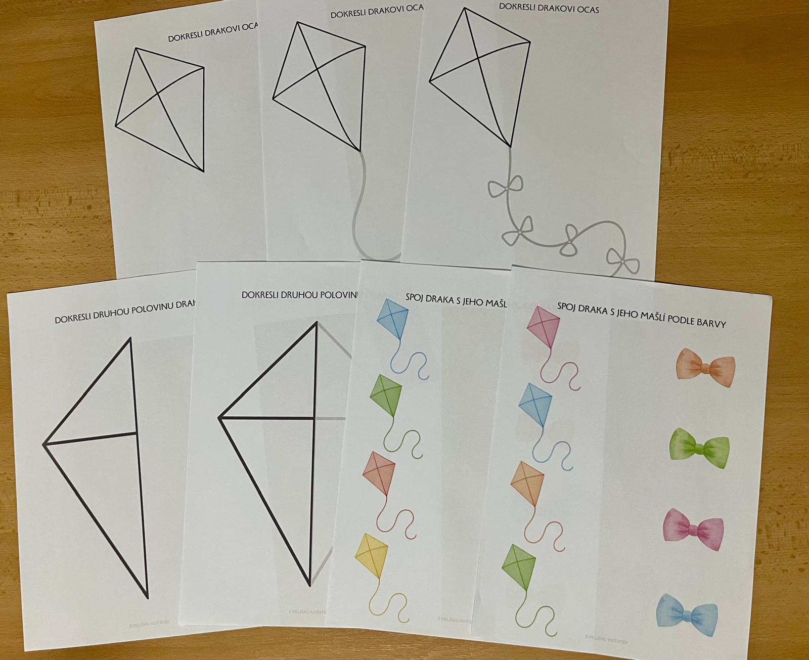 - papírový drak - barevný, černobílý