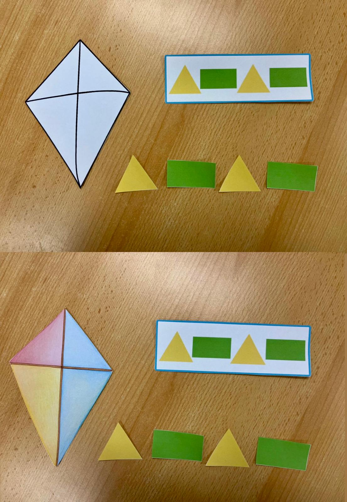 - Dokresli drakovi ocas, dokresli druhou polovinu draka, spoj draka s jeho mašlí podle barvy