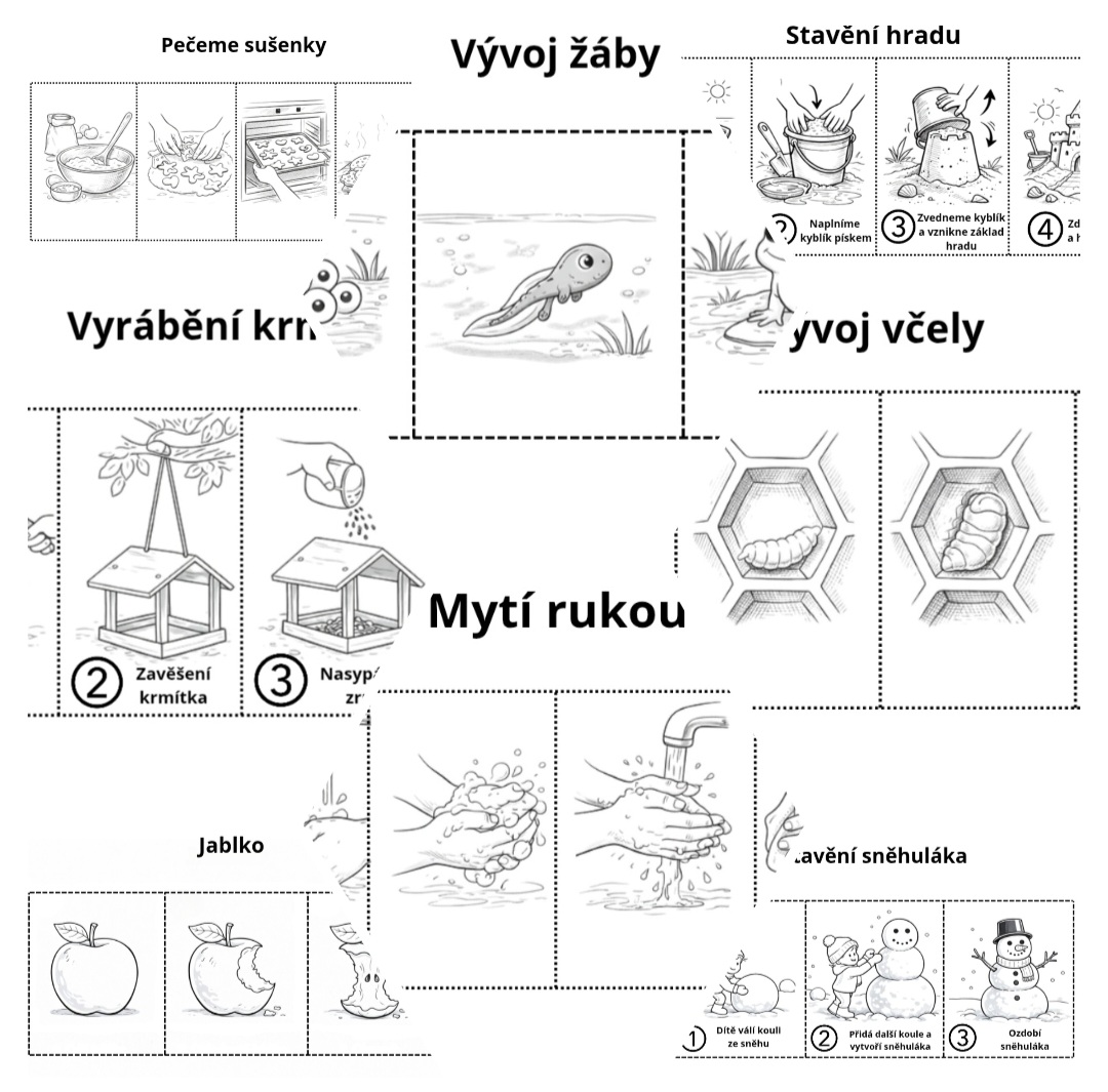 Materiál rozvíjí časovou orientaci, logické myšlení a vyjadřovací schopnosti dětí.