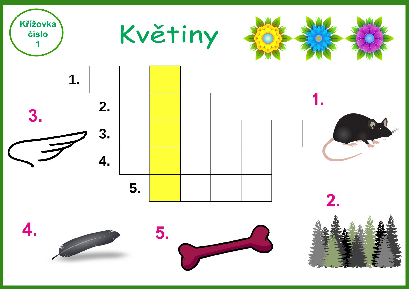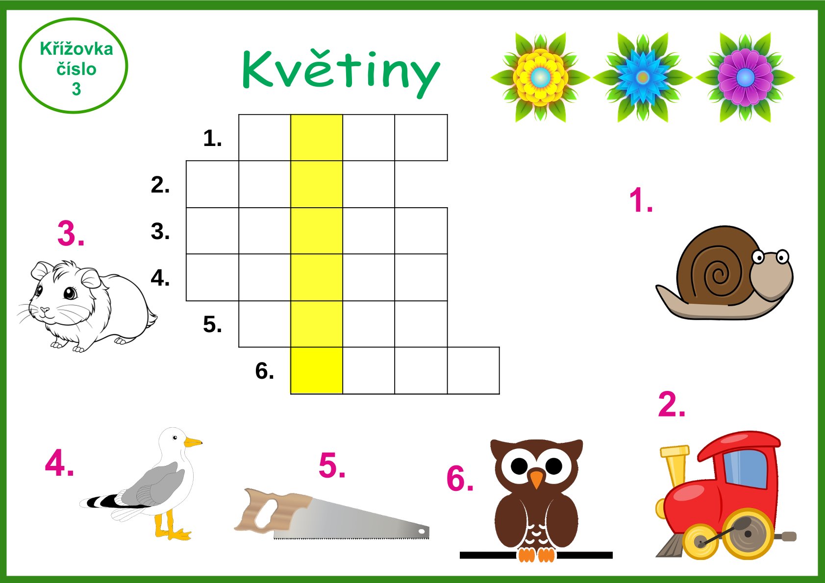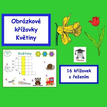 Obrázkové křížovky Květiny je vhodný materiál pro předškolní děti nebo děti první a druhé třídy základní školy či družinu. Obrázkové křížovky obsahují 16 křížovek a řešení pro učitelky. Celkem se jedná o 33 stran.