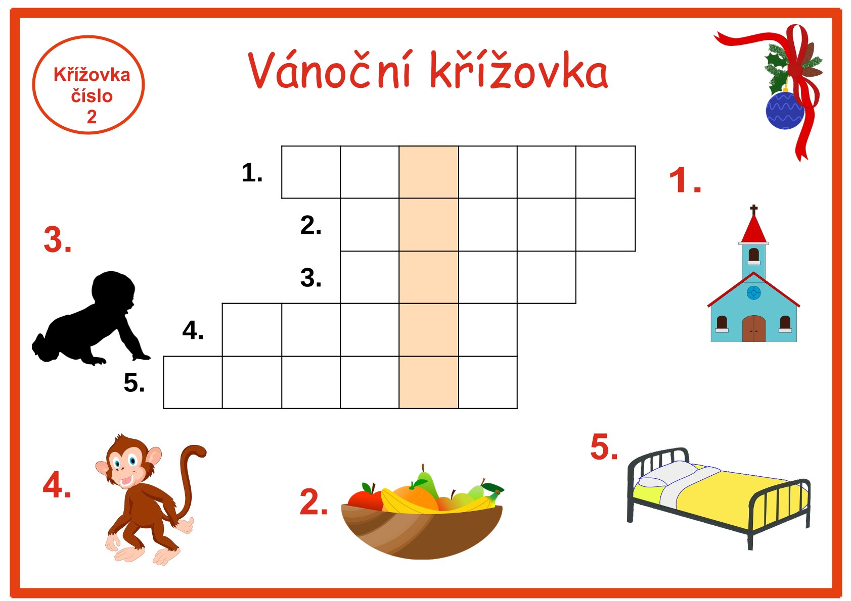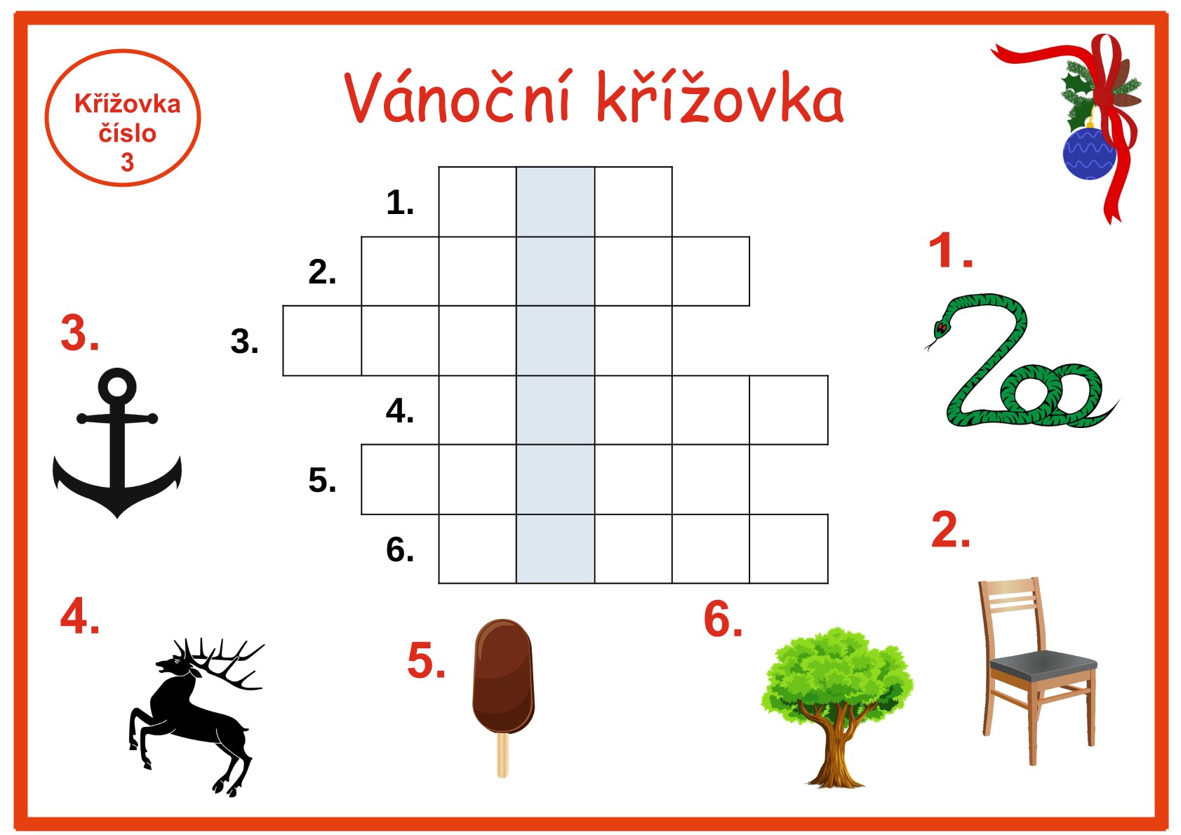 Obrázkové křížovky Vánoce je vhodný materiál pro mateřské školky nebo děti první a druhé třídy základní školy či družinu. Obrázkové křížovky obsahují 16 křížovek a řešení pro učitelky. Celkem se jedná o 33 stran.